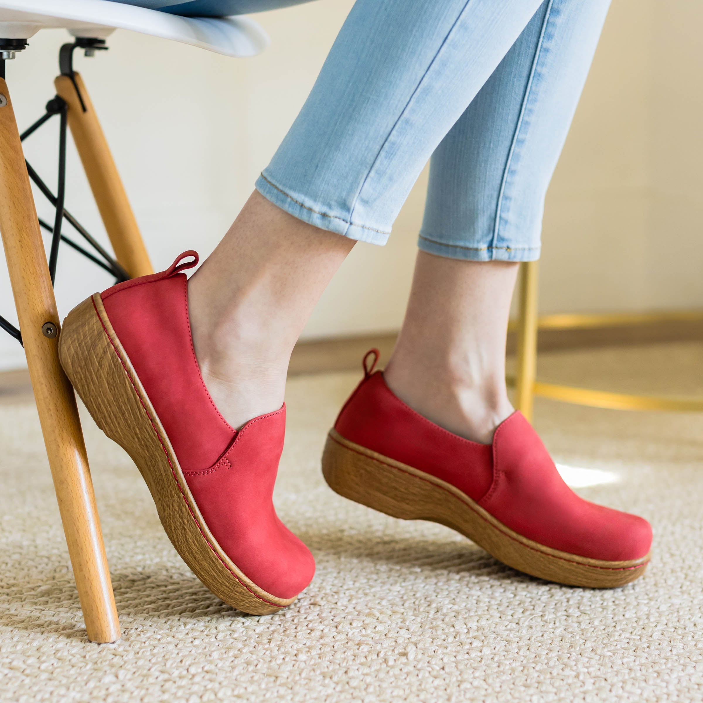 The Orygin combines casual charm and vibrant flare with a wood-look slip-resistant outsole and a variety of colorful uppers. Featuring a stain-resistant leather upper and an inside elastic across the vamp, this style will be your next everyday shoe. Underfoot, the durable microsuede removable footbed comprised of cork, polyurethane, and memory foam forms the contours of the foot for lasting support.