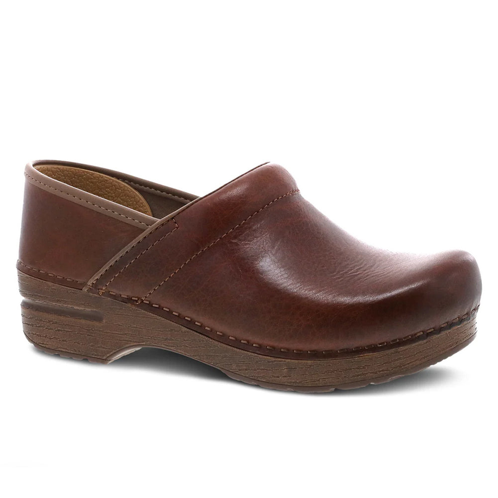 The Professional clog is Dansko's flagship style, and this leather choice draws from the equestrian roots of the founders. It features a roomy reinforced toe box for protection and comfort. The contoured footbed adds support to the comfort features like a padded instep collar to feel good with virtually any foot. We set ourselves apart with a protective heel counter that allows the heel to move up and down freely while providing lateral stability, and the anti-fatigue rocker bottom, which is built to keep you moving forward.