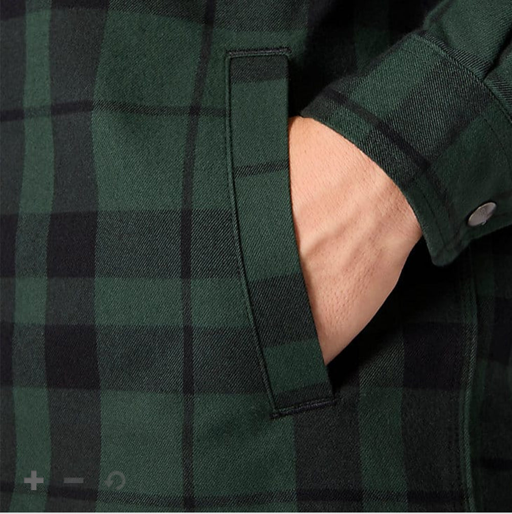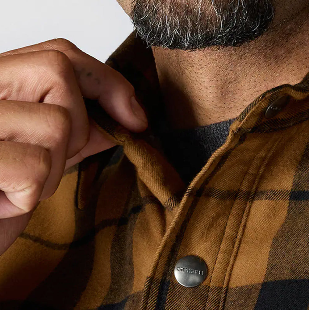 Made for cooler days, this men's sherpa-lined flannel shirt jacket is a versatile layer for cold shops and outdoor work. A sherpa fleece lining turns up the heat without being bulky or heavy. A relaxed fit offers a little extra room to bend and move.