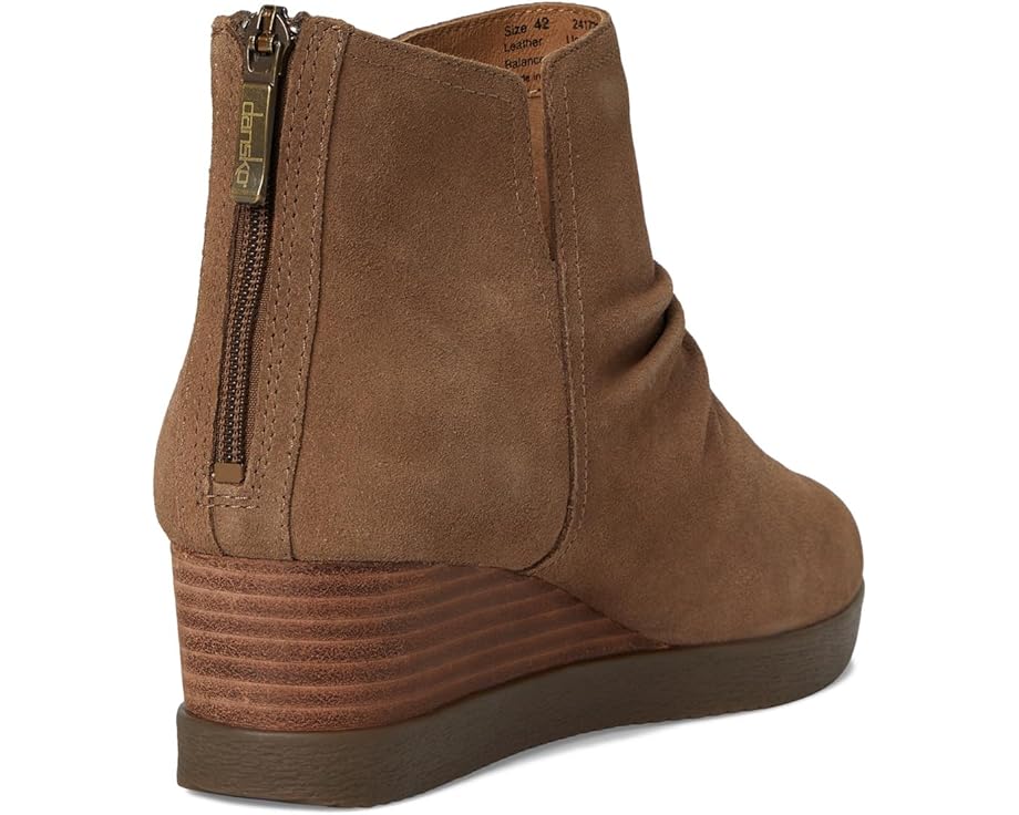Step into uniqueness wearing the Dansko® Stephanie. Crafted from waterproof suede upper treated with 3M Scotchgard for stain resistance, leather lining, and EVA insole, this pair of boots features round toe, PU removable foot bed with memory foam for added cushioning and Dansko® Natural Arch technology for all-day comfort and support. It comes with hell zippered closure, and stylish wedge and slouch vamp cutouts detailing.