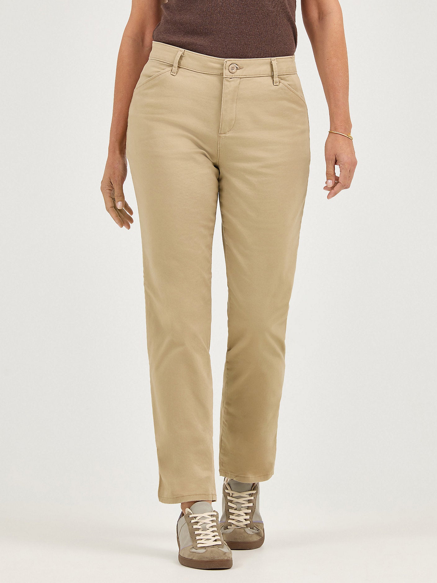 Rely on streamlined styling for a classically tailored look when wearing Lee® women's wrinkle-free pants. Carefree yet classic, these relaxed-fit straight-leg pants give you a look you can finally call your own. The straight legs look good with everything from flats and pumps to boots and wedges for versatility in wear.