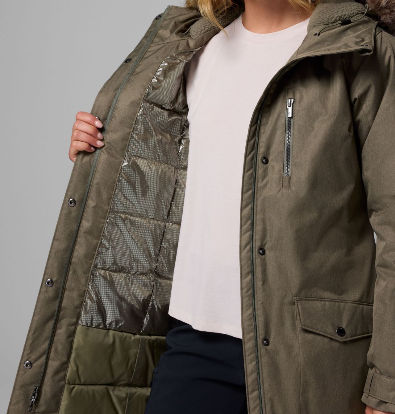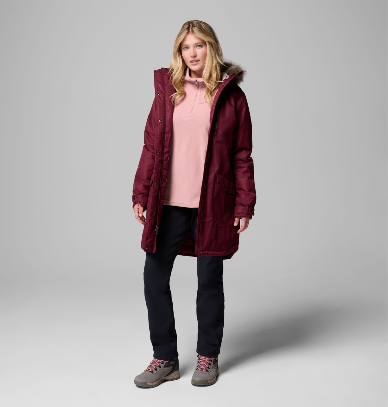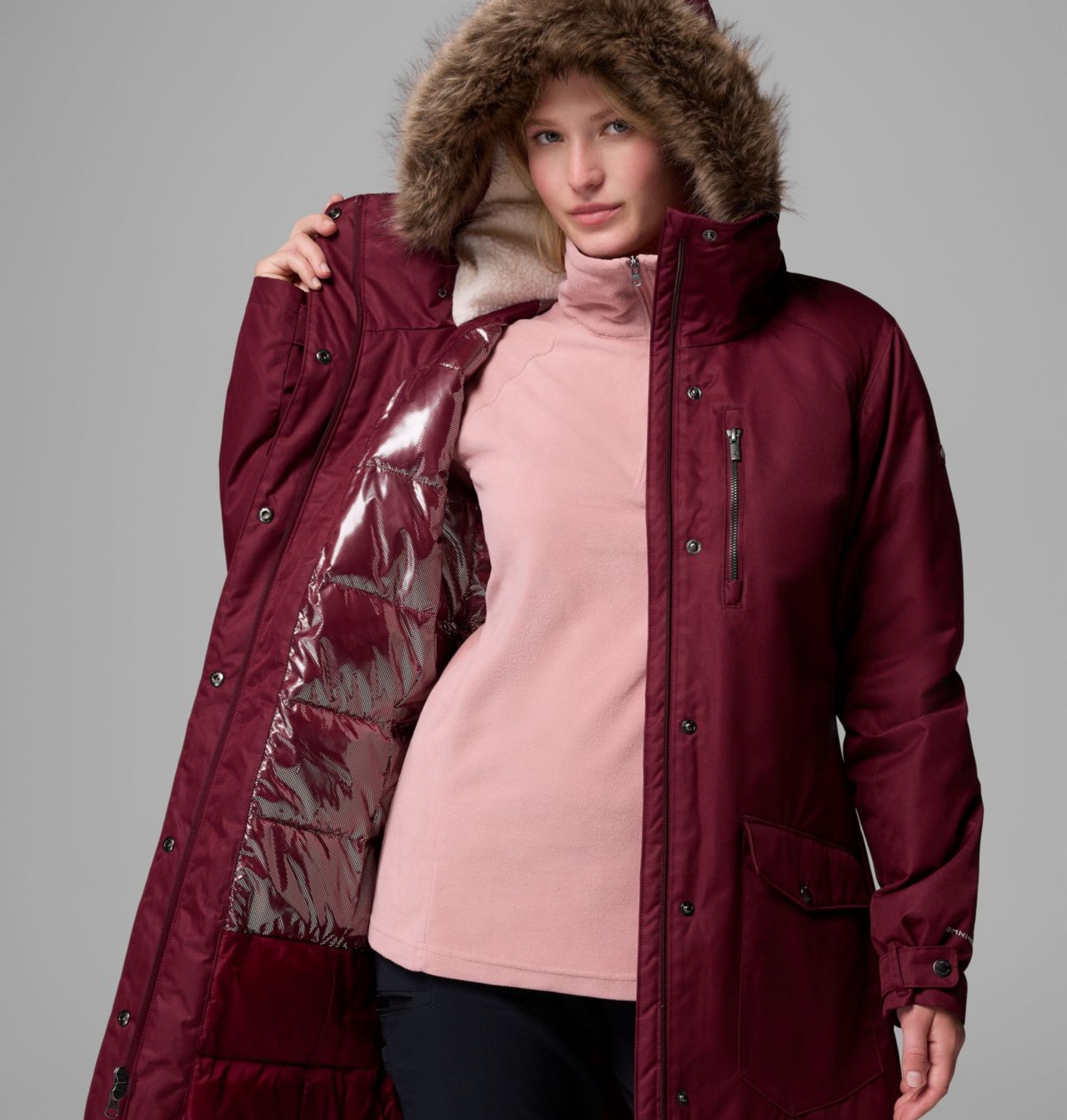 - Removable faux fur for warmth and custom styling