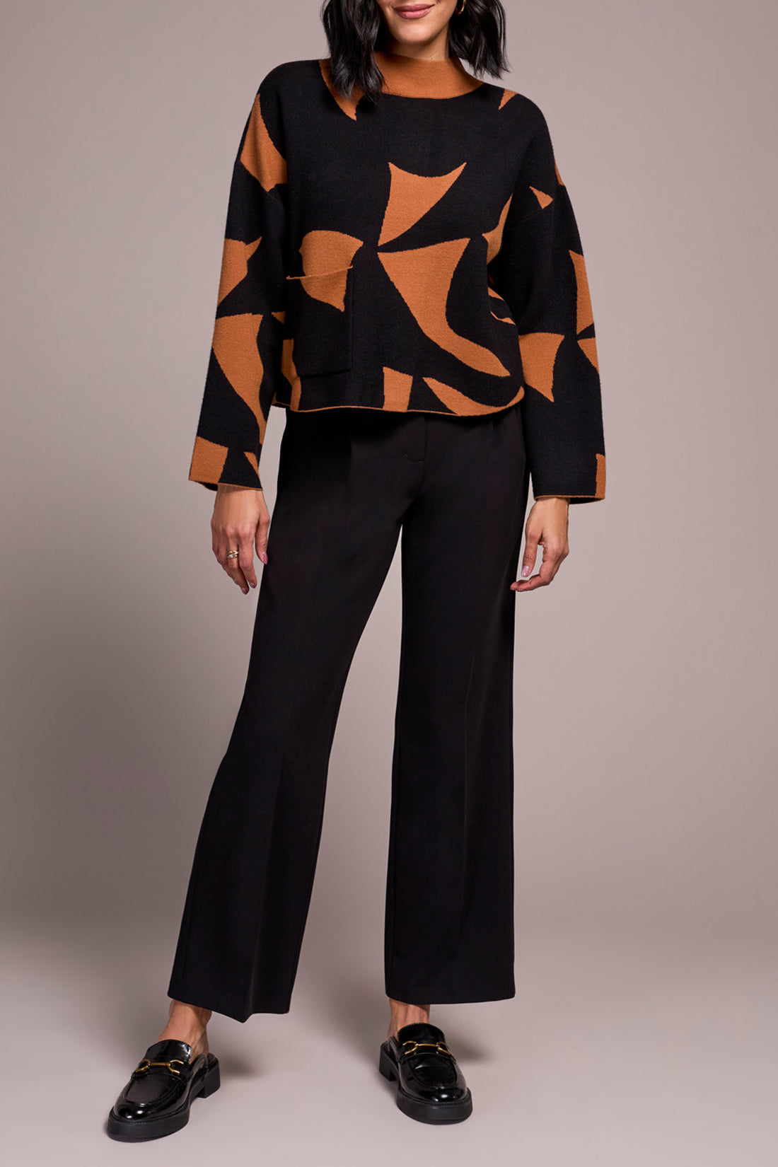 Abstract Print Mock Neck Sweater With Pocket - 23150-8277