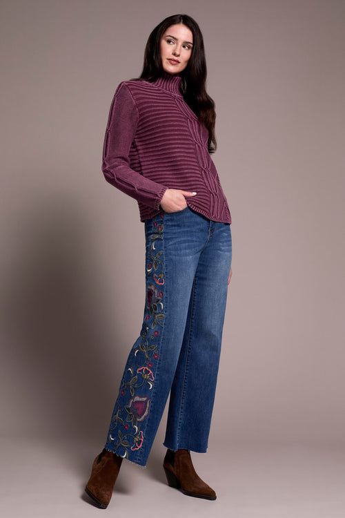 Vintage Washed Cable Knit Mock Neck Sweater - 59350-4632