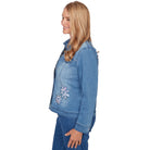 Women's Floral Applique Detail Light Denim Jacket - 25130