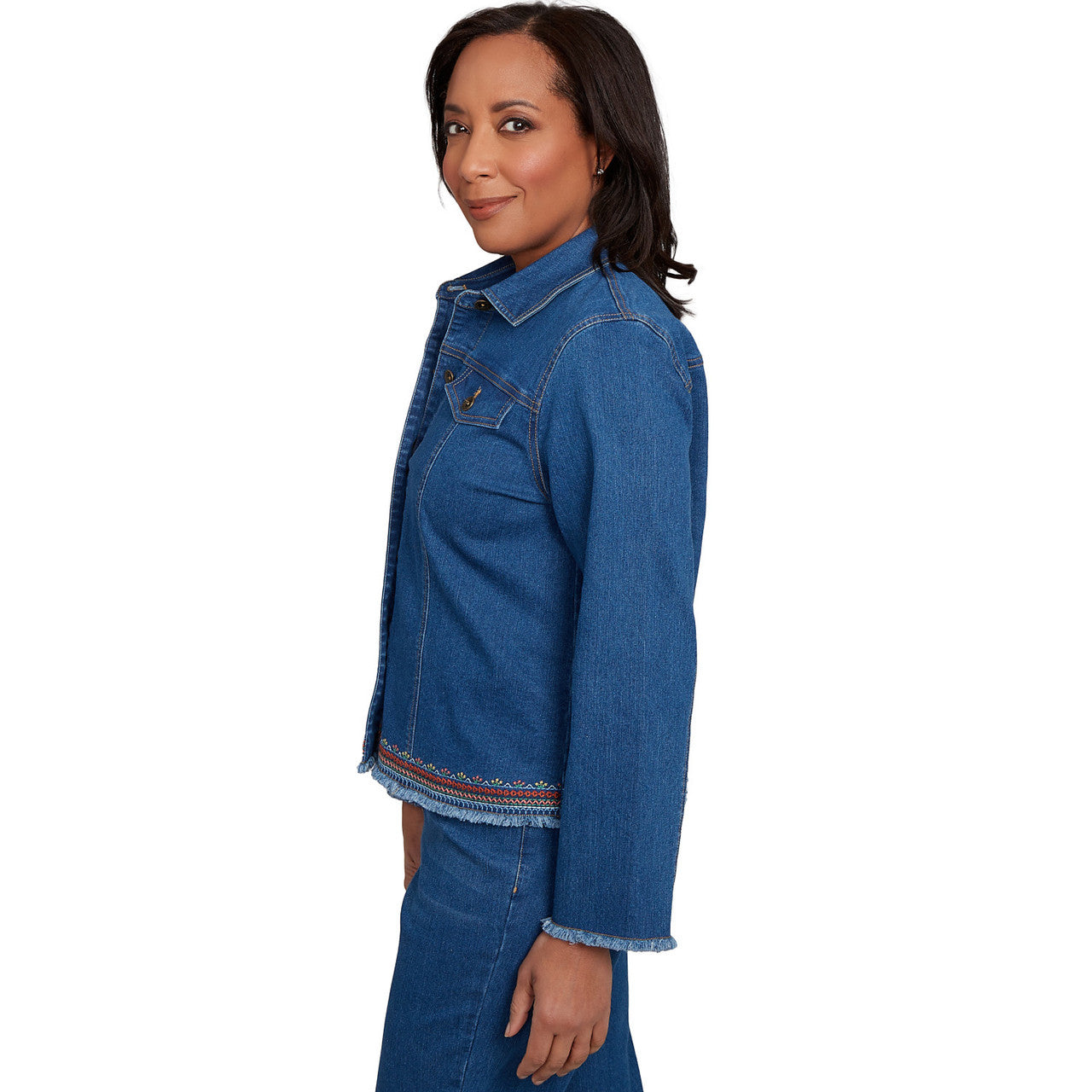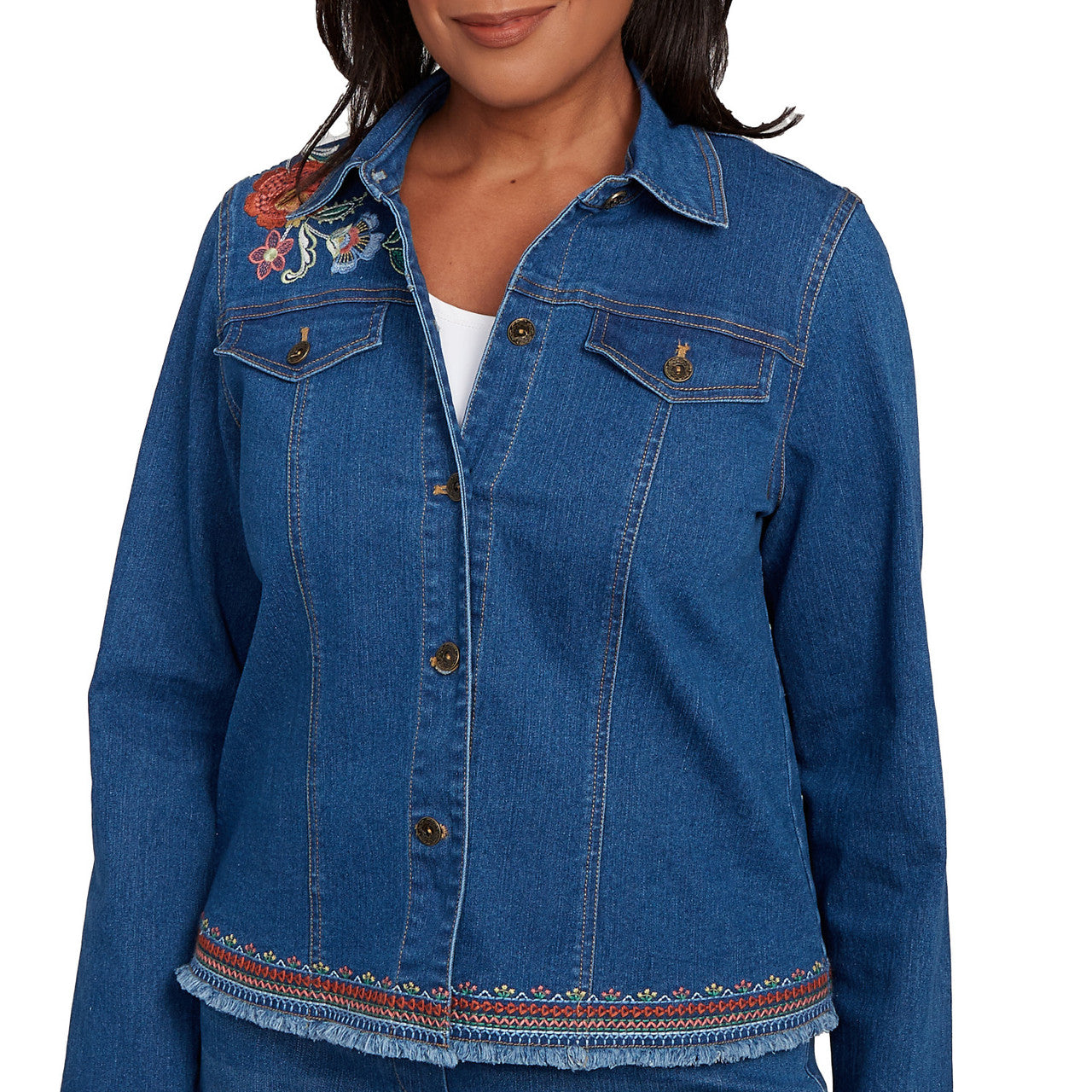 Women's Floral Vine Embroidered Border Denim Jacket - 12130