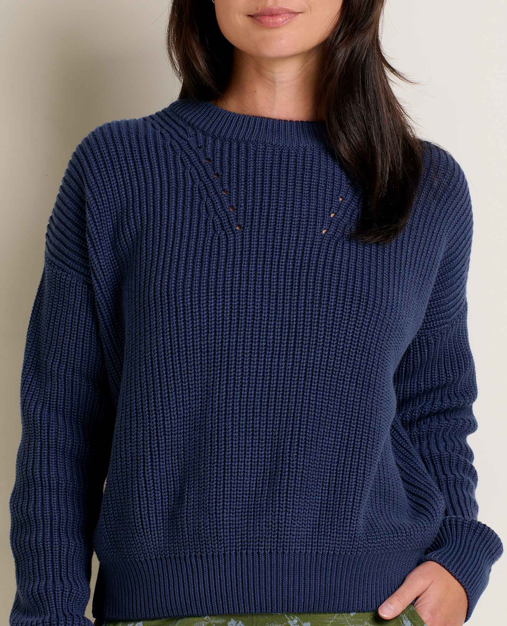 The Bianca you know and love (us too!) in a lofty shaker stitch for a classic heritage feel. Made of a mix of soft, durable, naturally breathable organic and recycled cotton, this sweater is a wear-all-year closet staple.