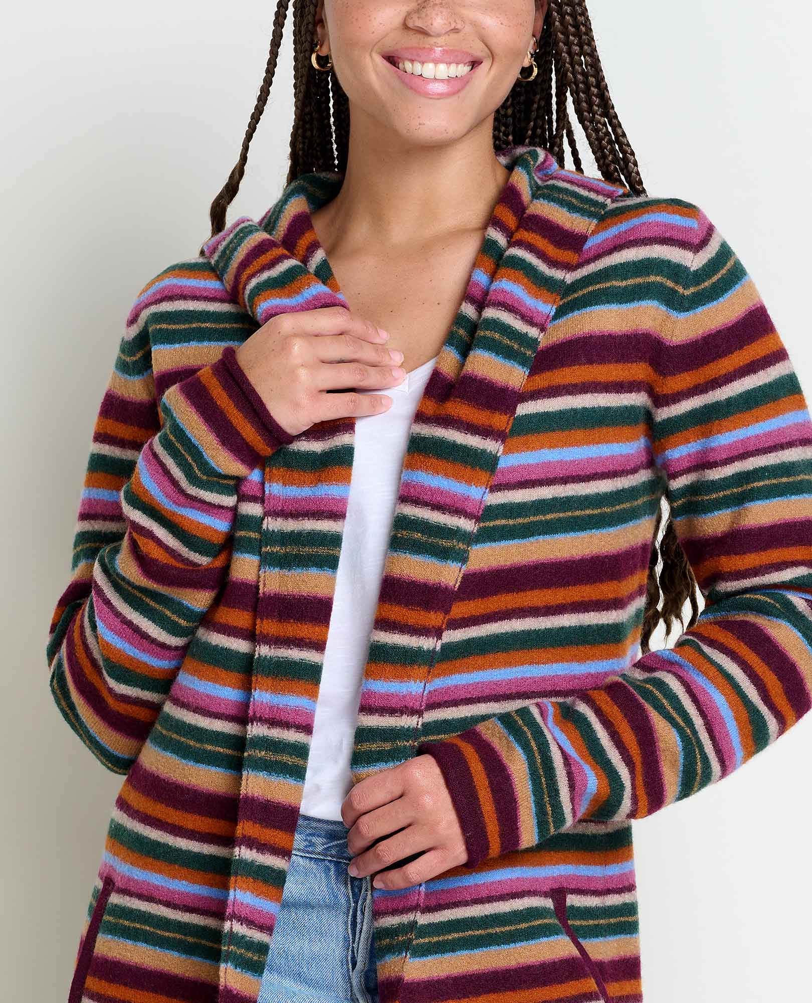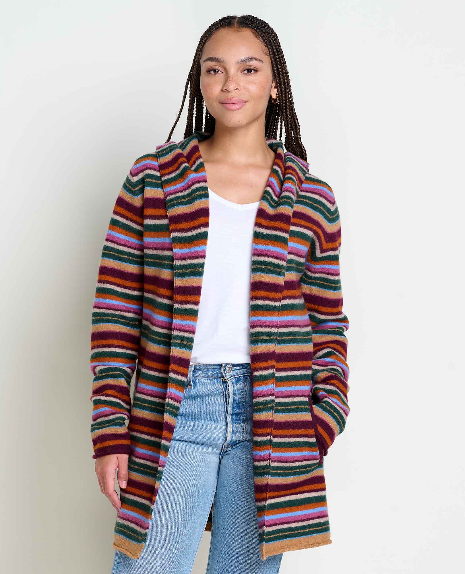 A drapey blanket of a sweater made from cruelty-free wool that won’t pill, fuzz or overheat you. An array of color combos and essential features like an oversized hood and front pockets make it a closet staple you’ll love forever.