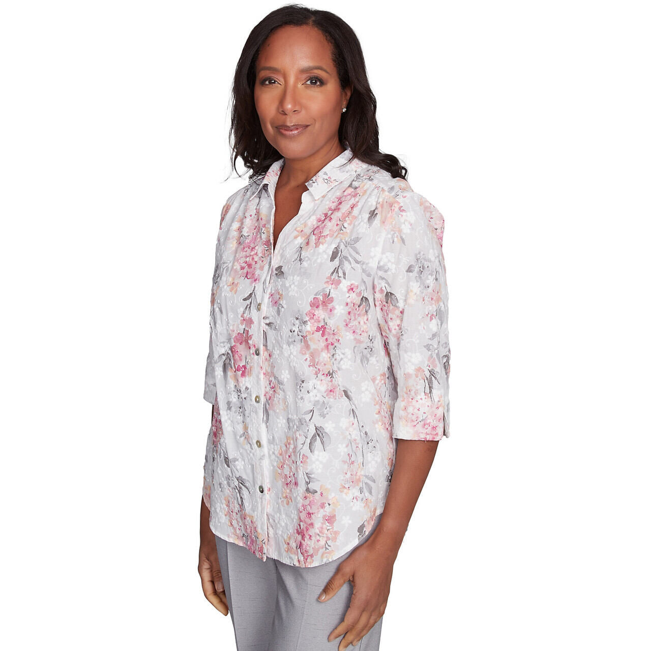 Women's Collared Button Front Hydrangea Top - 90442