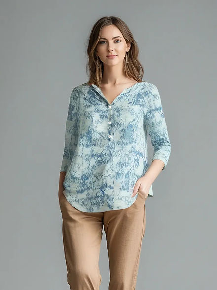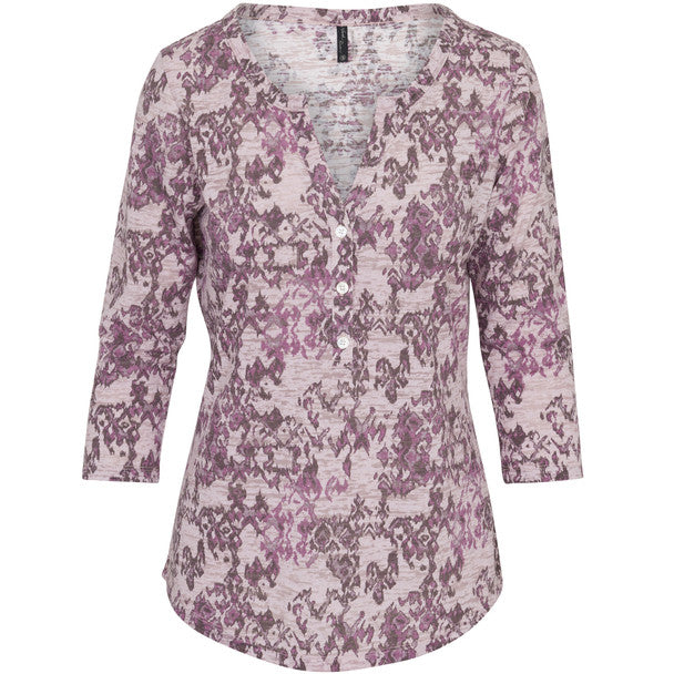 Women's Printed Burnout Henley 3/4-Sleeve Top - Plus Size - NRL2612P