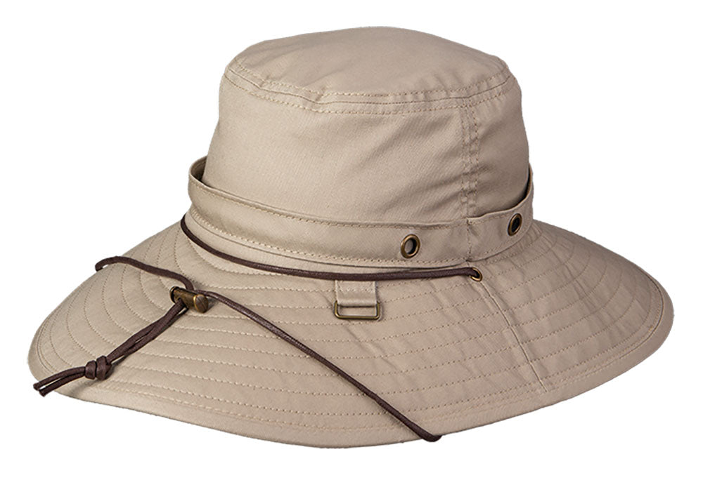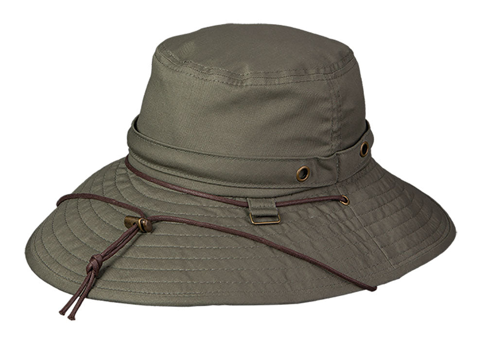Packable bucket hat made in soft 100% cotton twill with a floral lining and sweat-band. Self fabric band with eyelets and tab detailing. Chin cord and toggle. Dimensional brim measures 4 1/2” in the front and back and 3 5/8" on the sides.