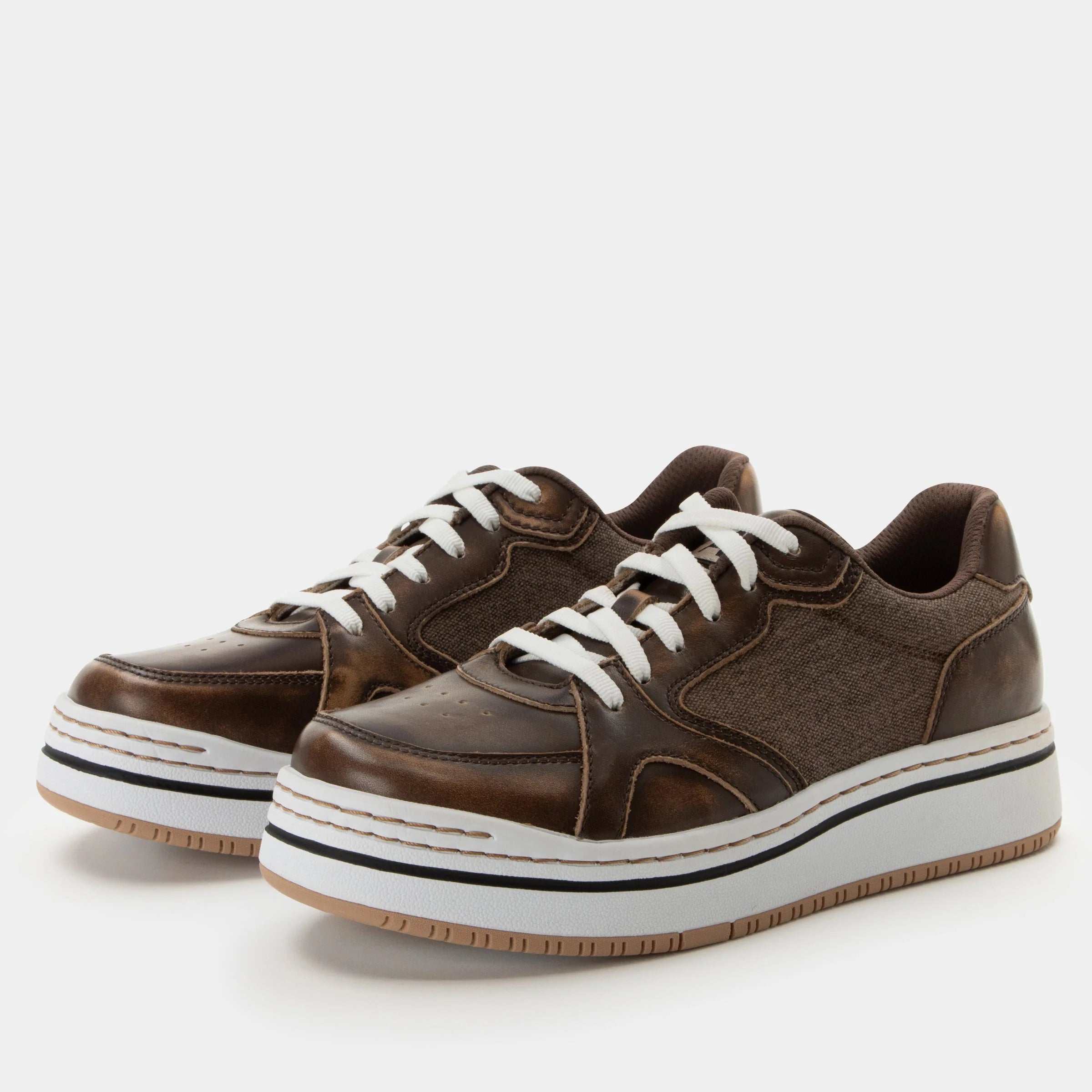 Featured in a Brown colorway on a leather and washed canvas upper.