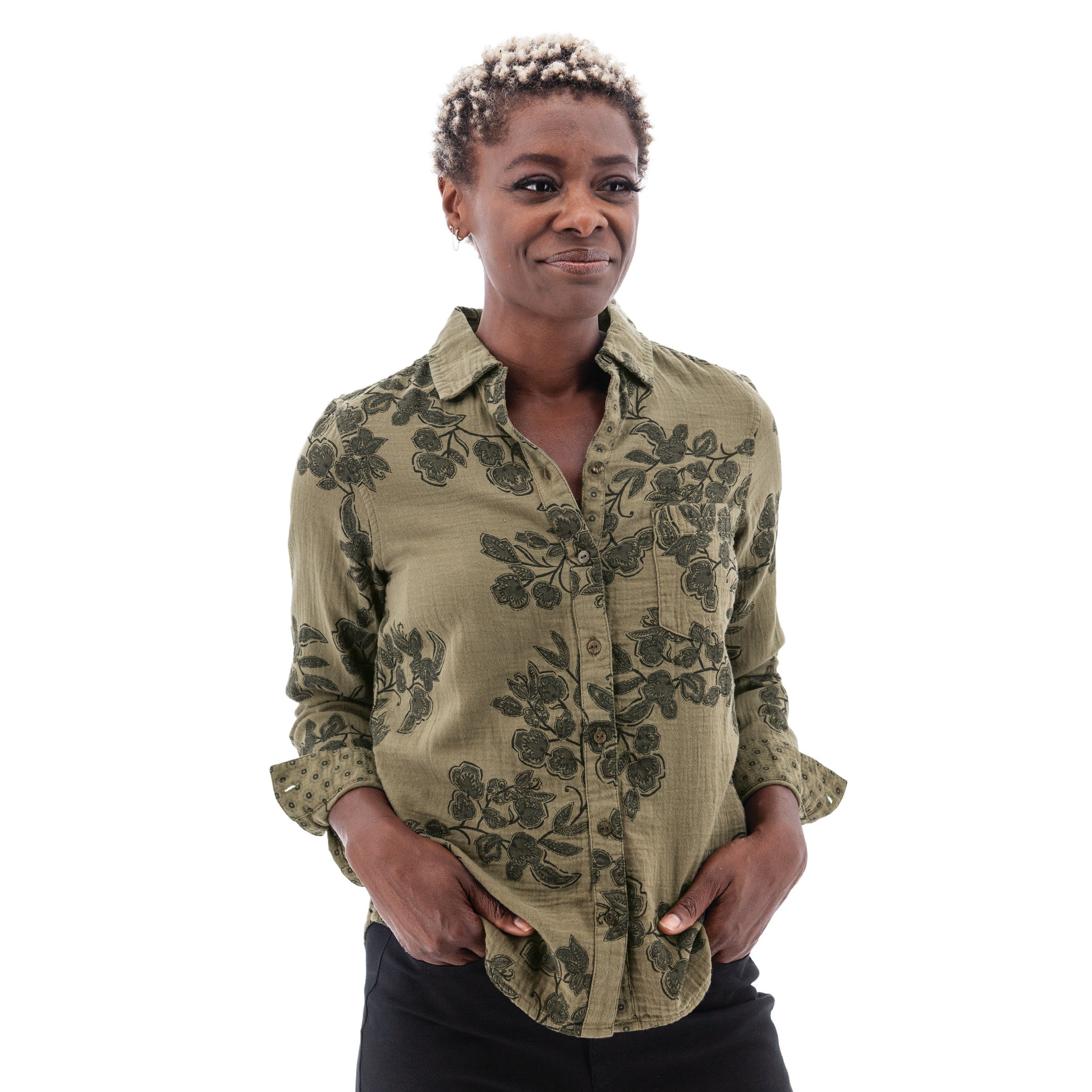 The Gramercy Floral Button Up Shirt takes classic button-up style and gives it a bold, modern twist. Made from 100% organic cotton, it features an exploded floral print with a coordinating ditsy print at the plackets, cuffs and collar. We know good design comes down to the little details, so we incorporated pick stitching at the collar and pocket and garment dyed the whole shirt for a rich, lived-in feel from the get-go. Who said a button-up has to be boring?