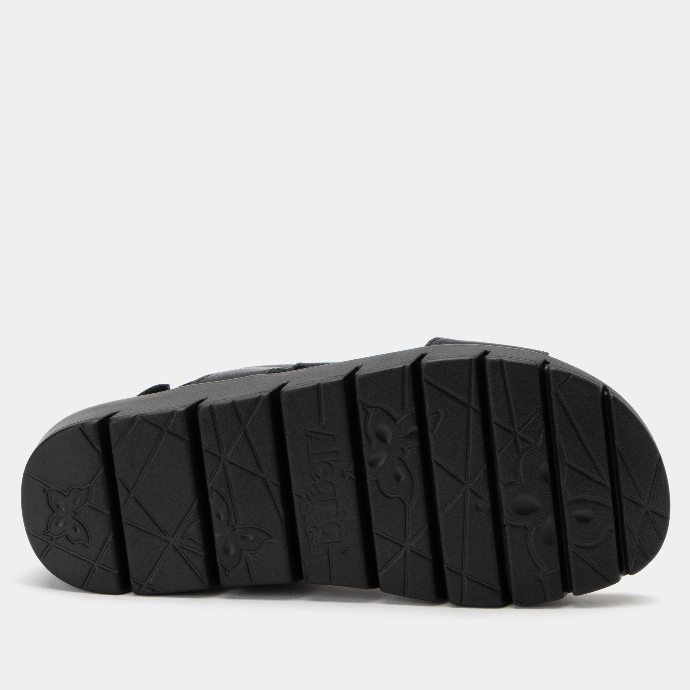 Featuring a versatile Black vegan leather upper with an eye-catching printed cork pattern footbed.