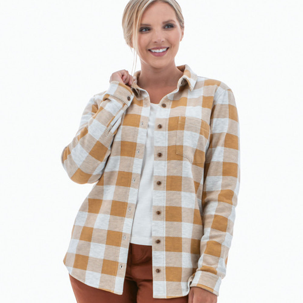 Introducing the Luscious Plaid Shirt, the style that looks like a polished button-front but feels like being wrapped in a cozy blanket. Utilizing recycled polyester, this shirt is doing its part for the environment as well as keeping you comfortable. We love the relaxed boyfriend fit and classic details like a single chest pocket and collar. But the thing to love the most about this style is the super soft heathered fleece which makes this warmer and cozier than a standard flannel.