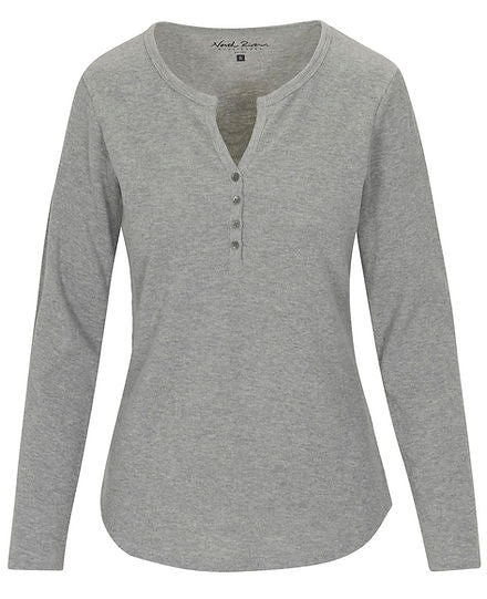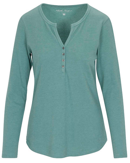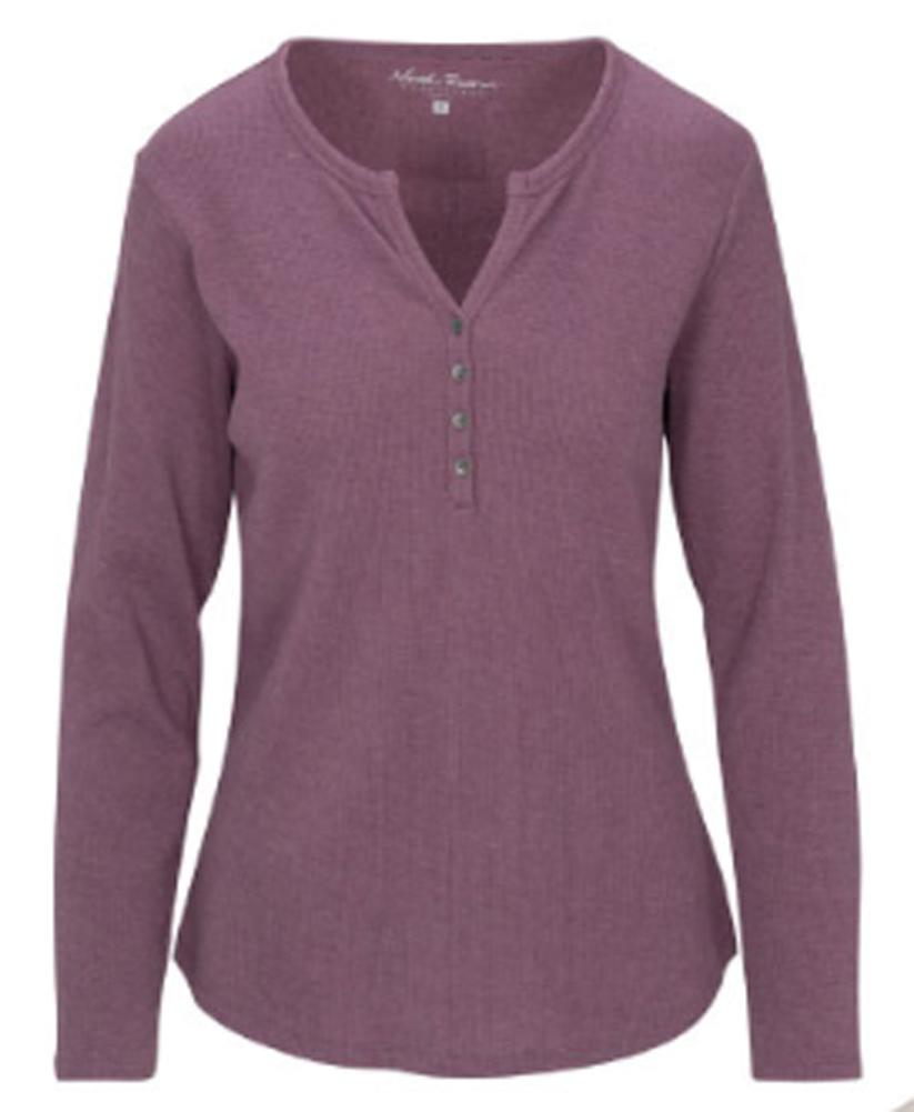 The top has a V-neckline with a button-down front and long sleeves. The fabric Maury Waffle Henley and lightweight, with a ribbed texture casual and relaxed.
