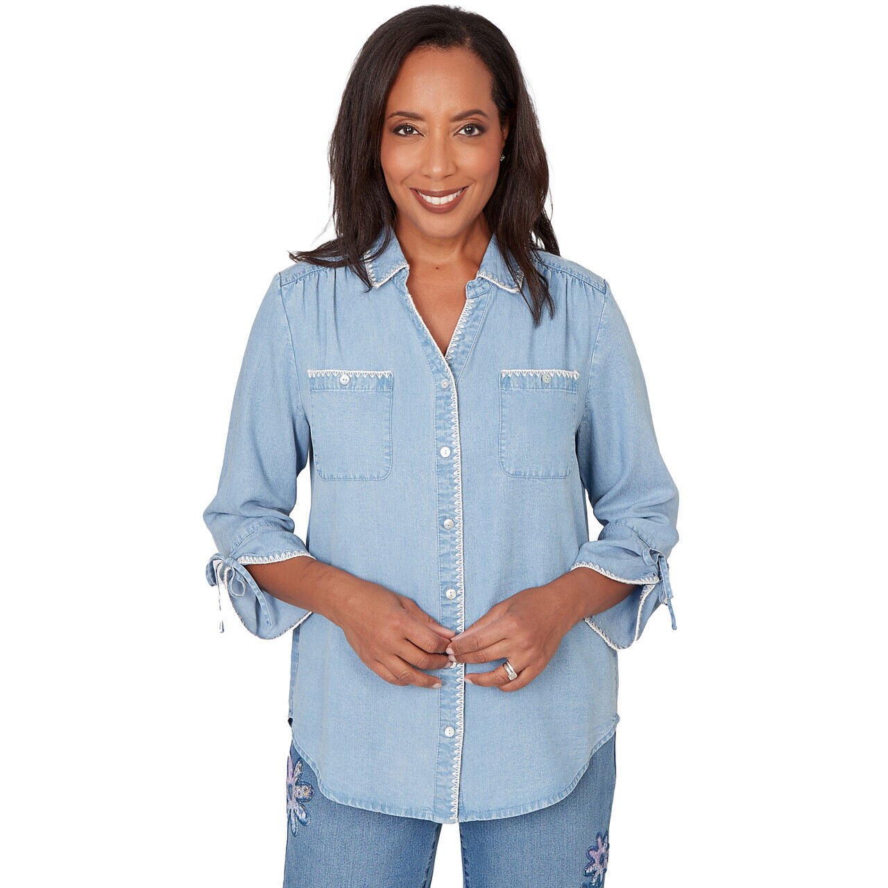 Women's Blanket Stitch Trim Button-Front Top - 25140