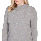 Delicate soutache embroidery blooms along the floral neckline of this knit top, adding a graceful touch to its classic shape. Designed with long sleeves, a ribbed neckline, and matching ribbed detailing at the sleeve cuffs and hem, it's finished with a straight hemline that brings polish to the cozy silhouette.