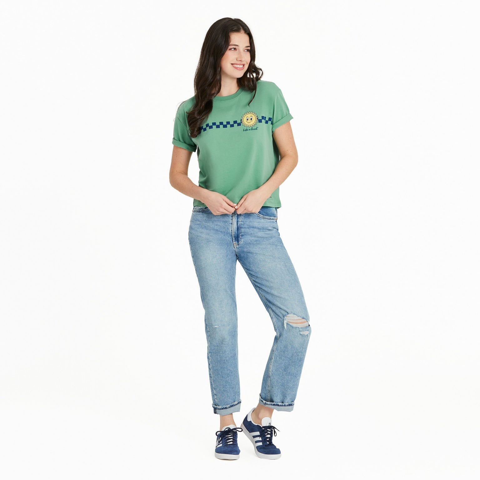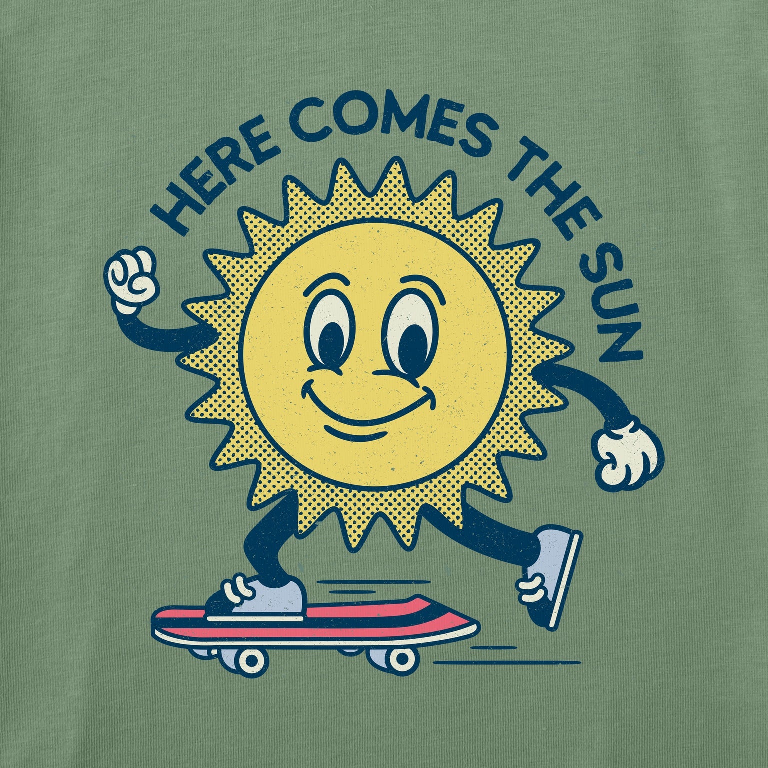 Women's Here Comes The Sun Skateboarding S/S Crusher Boxy Tee - Granite Green -139716