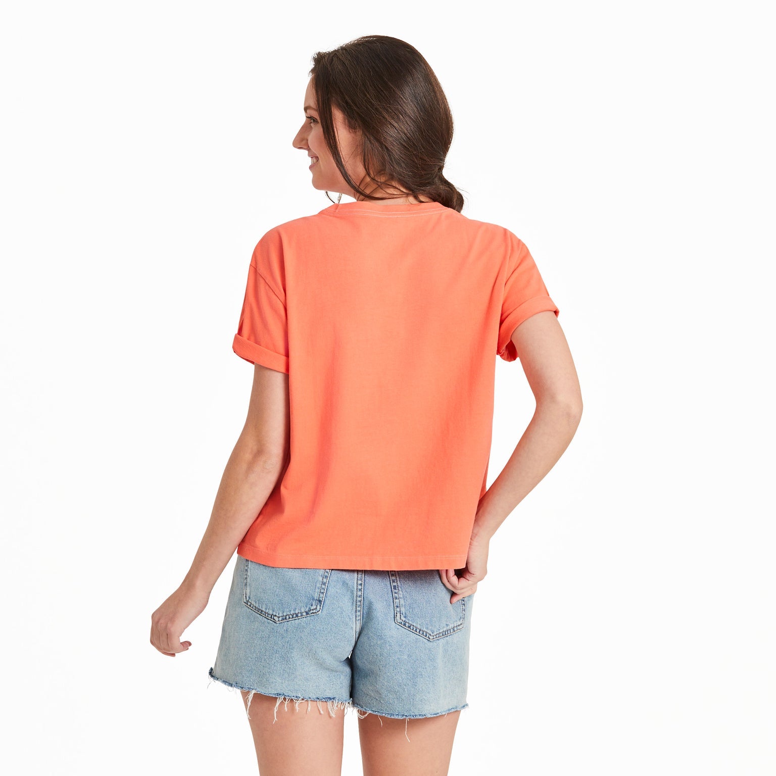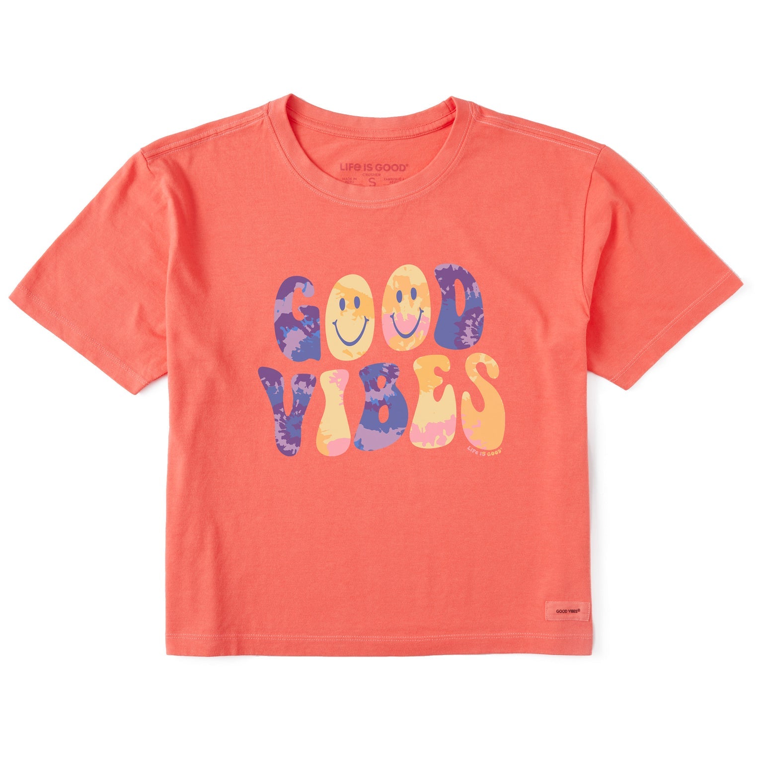 Women's Tie Dye Good Vibes Happy Face S/S Crusher Boxy Tee - Mango Orange - 129333