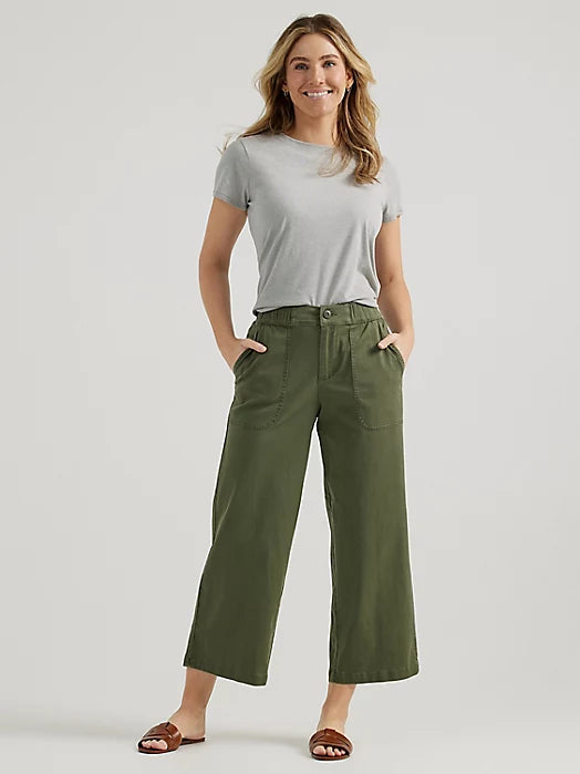 When we say Ultra Lux, we mean it. The Lee® Women's Ultra Lux Comfort Wide Leg Utility Crop melds our stretchy elastic waistband with your favorite cut-off capri. Designed with plenty of pocket space, a high-rise waist, and a wide leg, these cropped pants prioritize utility without ever losing sight of style. Plus, they're made from 100% cotton for a feel that gets better with every wear.