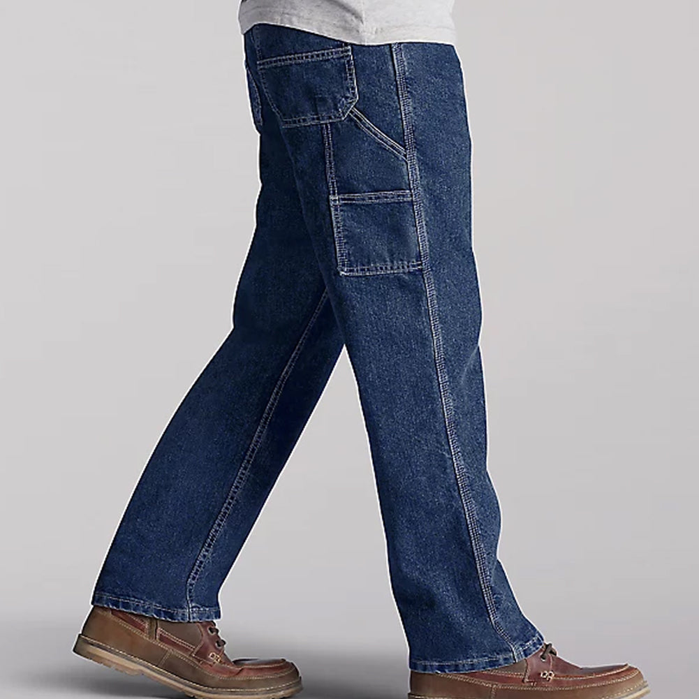 Slip into Lee® men's carpenter jeans for an old-school blend of everyday comfort and workday convenience. With the same hard-working design, fit, and style as Lee® Dungarees carpenter jeans, these updated cargo jeans come in a range of colors that compliment your look. The loose, just-below-the-waist fit and mid-rise styling work well for most body types.