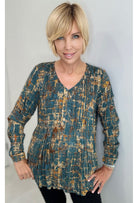 A relaxed fit accented by flattering v neckline and small buttons. Mid length cut gives coverage even with the most fitted of pants. Easy care material and lightweight enough to either layer or wear this stunning piece solo.