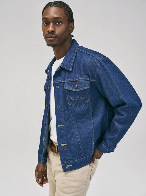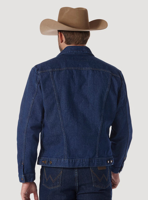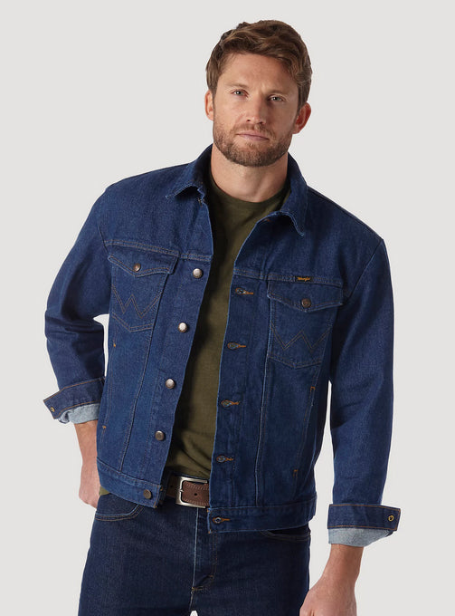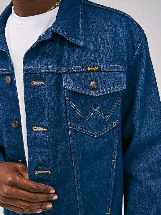 With all the same character and quality of an original, the Wrangler® Cowboy Cut® unlined denim jacket is as timeless as it gets. It's crafted from 100% cotton for a comfortable yet rigid fit that only gets better with time. Plus, it comes unlined to serve you well through every season. This classic denim jacket features all the iconic details you know and love—the chest pockets with flaps, snaps, and our signature 'W' embroidery, as well as lower pockets, a spread collar, and branded hardware. You'll want to wear it with anything and everything in your closet, but especially your favorite pair of Wrangler jeans.