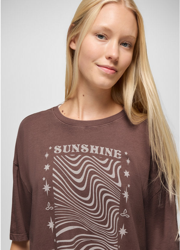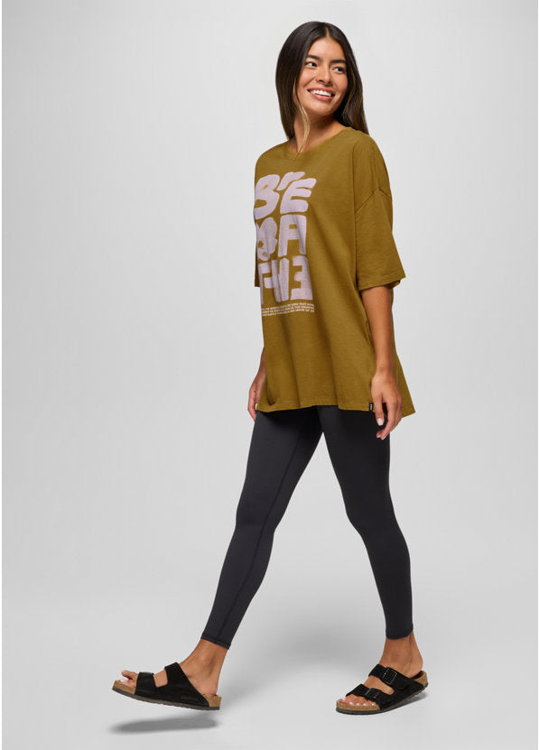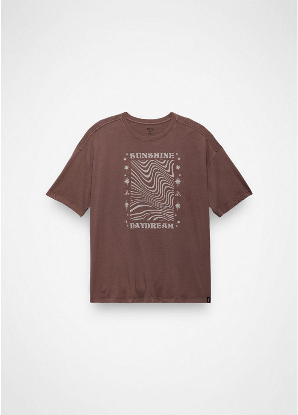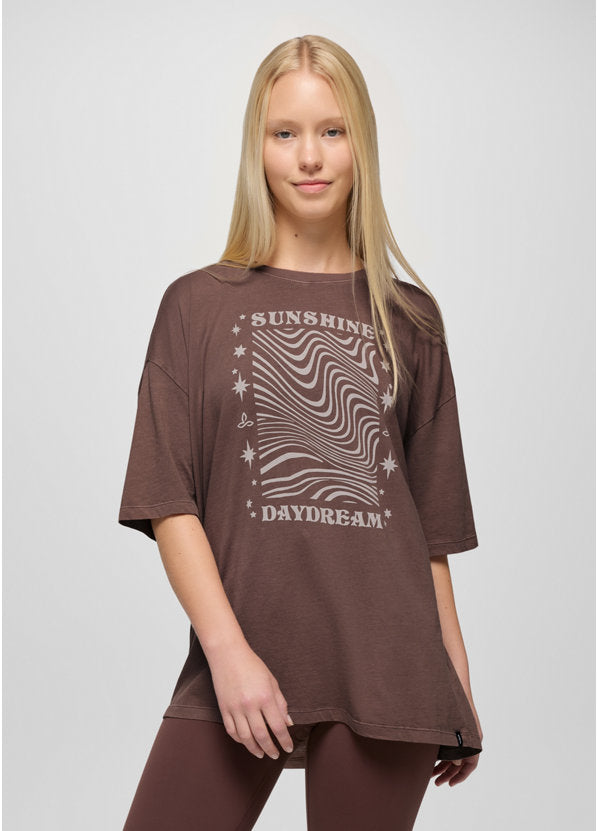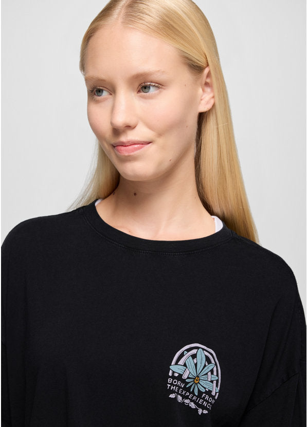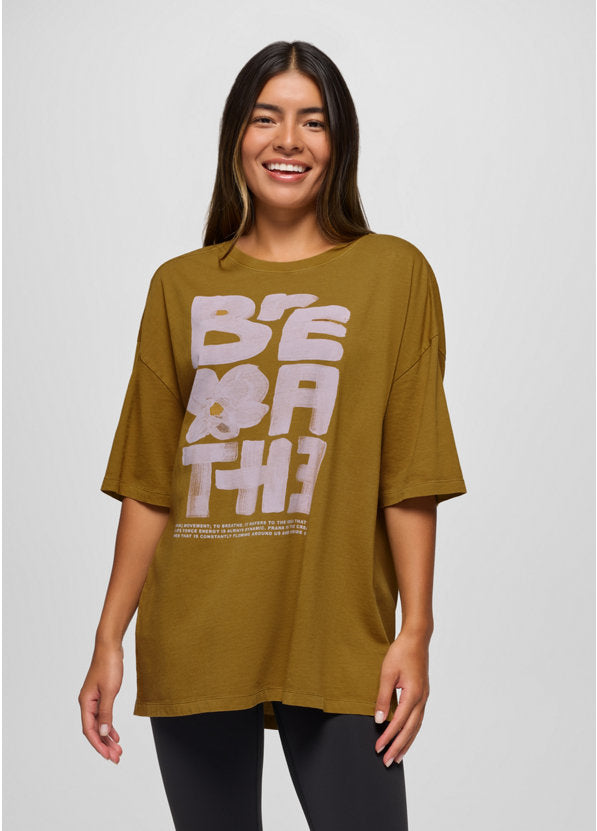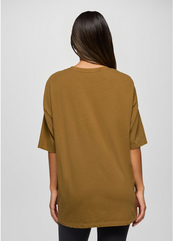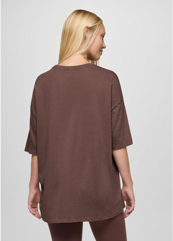 This oversized tee has a signature prAna graphic and vintage wash detail. The breathable Regenerative Organic Certified® Cotton fabric is super soft and keeps getting softer with each wash. Pair it with biker shorts and high-tops for a sporty look that's ready to relax or head to the skate park.