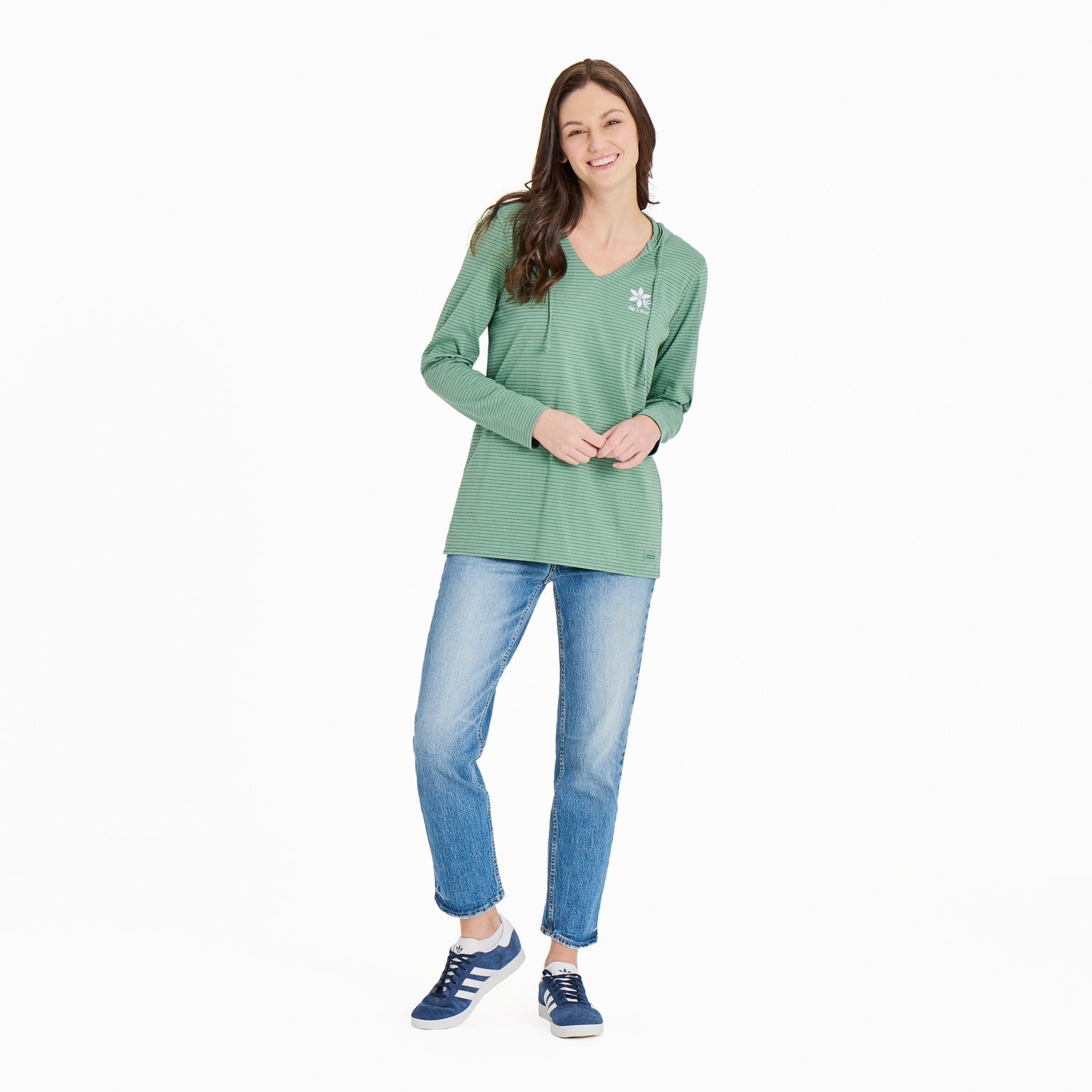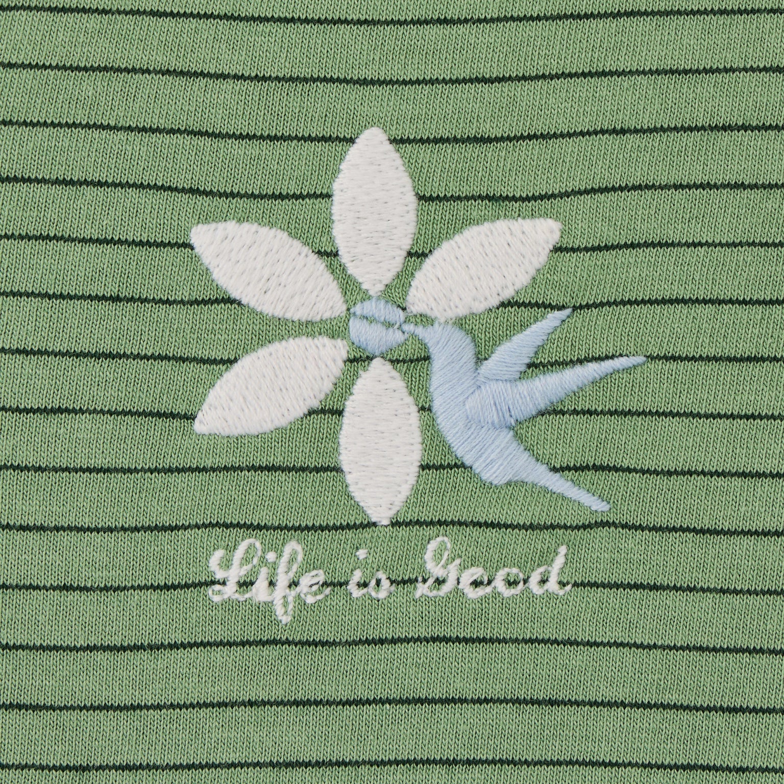 Hummingbird Flower L/S Striped Crusher-LITE Hooded Tee - Granite Green - 139699