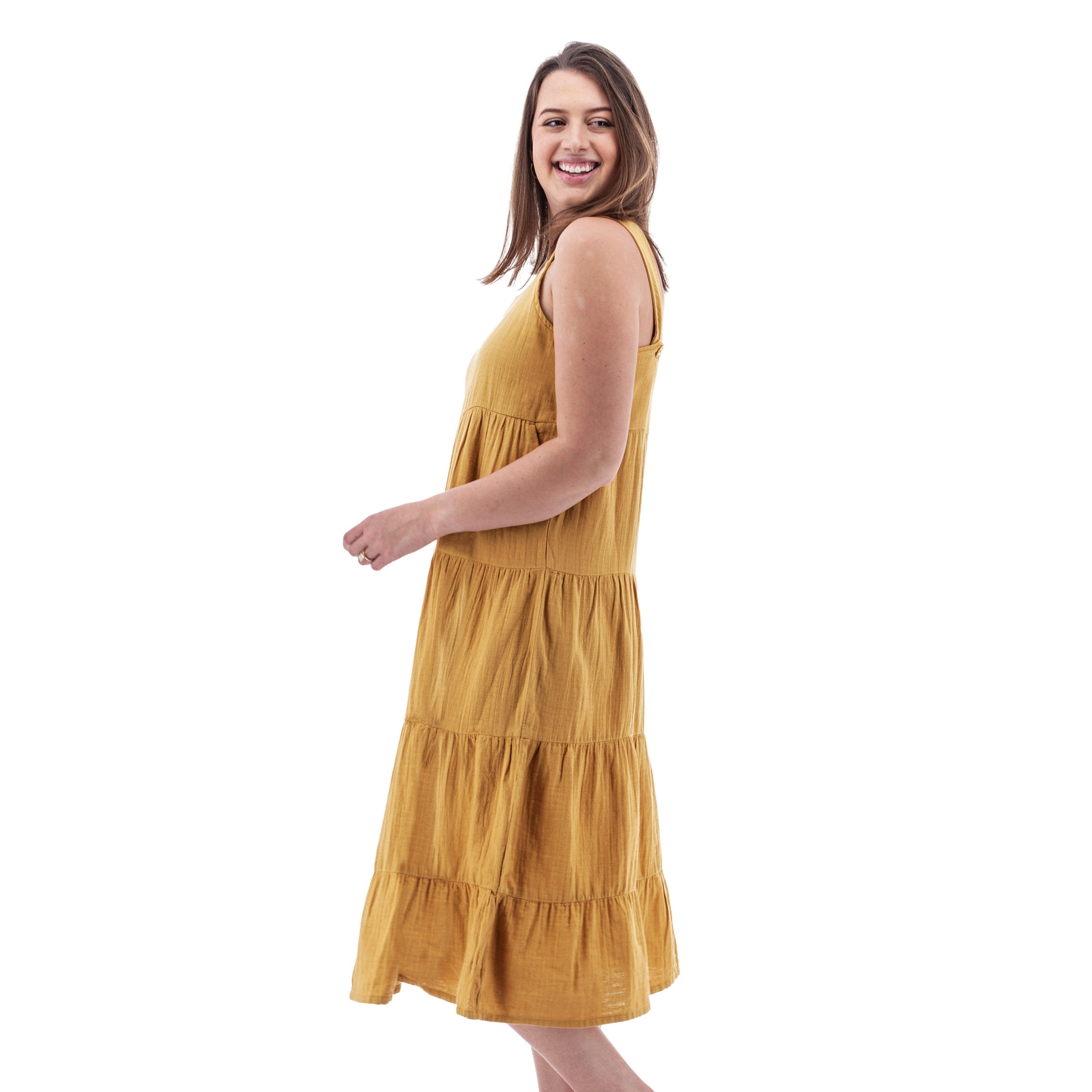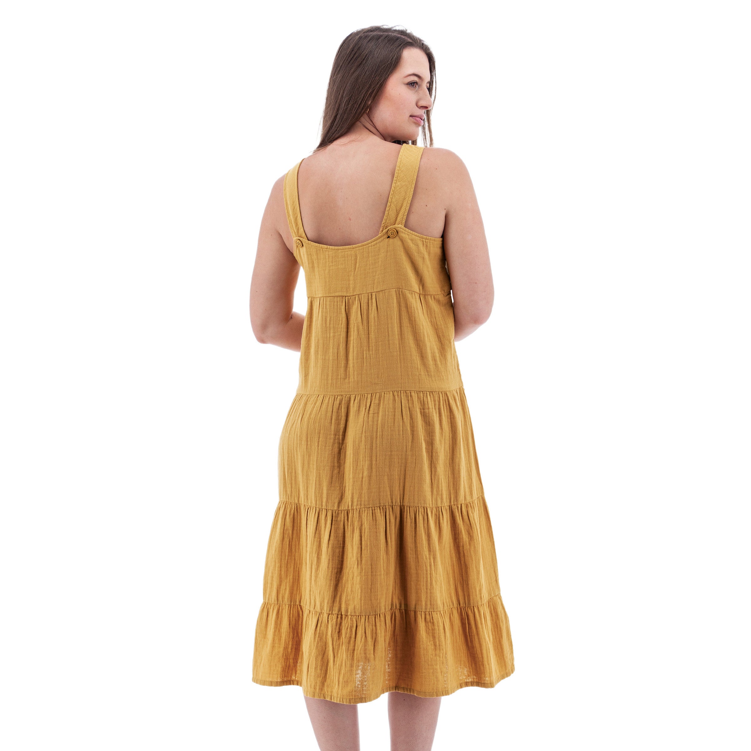 The style that launched a thousand compliments: introducing the Kelford Tiered Midi Dress. The effortless aesthetic of this breezy dress stands out in a crowd - easy-going yet sophisticated. But what feels even better than the inevitable adoration is the organic cotton gauze fabric. This loosely woven fabric is airy, soft, and slightly textured. It breathes and moves like a dream, making you feel wonderfully light all day. Thoughtful design details flatter, including the square neckline, gentle scooped opening at the back, and adjustable, bra-friendly straps. What can make this even better? Pockets, of course! This is style without the fuss - just slip it on and go, looking polished and totally you.