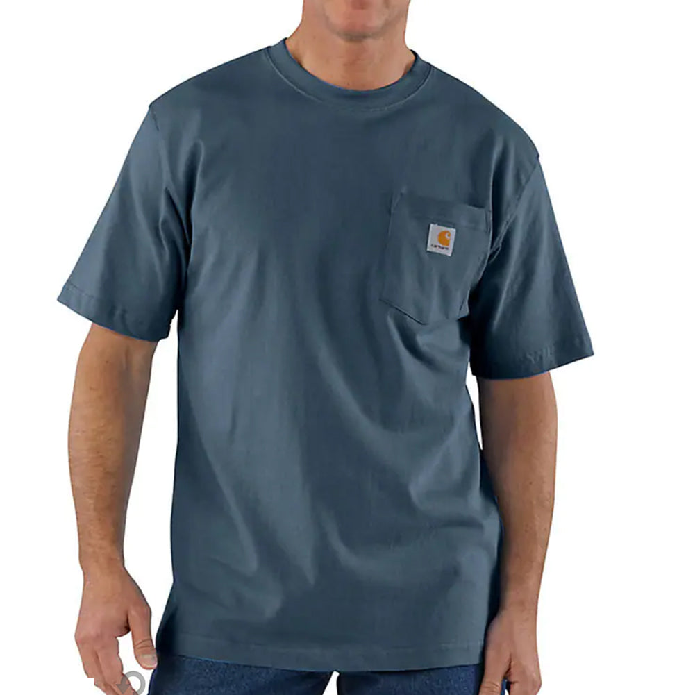 Carhartt pocket t-shirt debuted in 1992, and its rugged cotton design and clean looks made it a fast favorite among the hard-working folks who pulled it on. Though decades and trends have come and gone, there's a reason the K87 remains a classic. This men's t-shirt is made with heavyweight cotton built to handle tough days on the job. It has an loose fit that gives you room to move and a soft feel that only gets better with time.