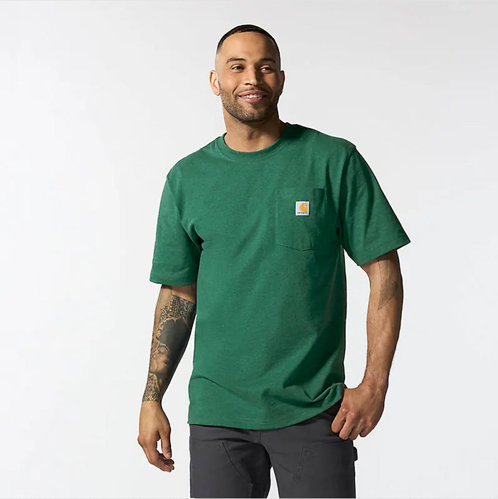 Carhartt pocket t-shirt debuted in 1992, and its rugged cotton design and clean looks made it a fast favorite among the hard-working folks who pulled it on. Though decades and trends have come and gone, there's a reason the K87 remains a classic. This men's t-shirt is made with heavyweight cotton built to handle tough days on the job. It has an loose fit that gives you room to move and a soft feel that only gets better with time.