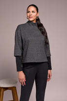 Make a bold impression with this top, featuring striking houndstooth patterning that instantly elevates your look. A mock neckline adds refined polish, while a mix of relaxed and fitted sleeves introduces modern structure. Finished in brushed jacquard knit, it offers rich texture with a sophisticated touch.