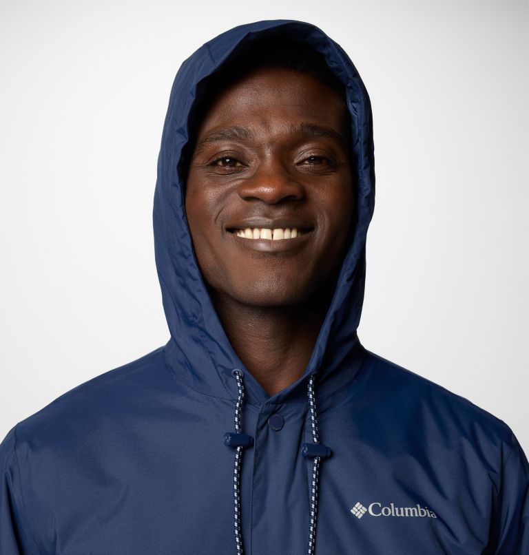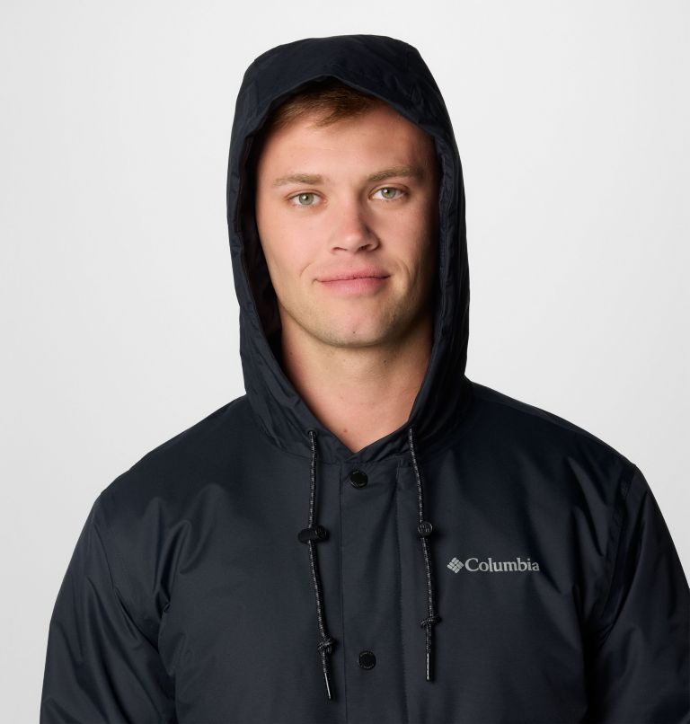 • Drawcord-adjustable hood secures the fit