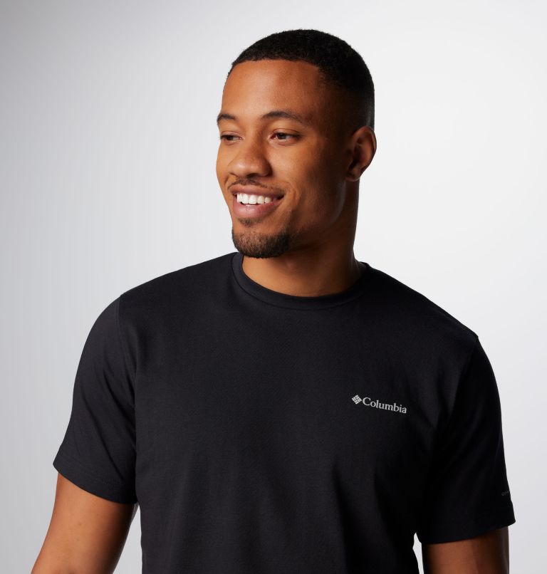 Crafted of cotton blend wicking fabric, this tee is an outdoor essential.