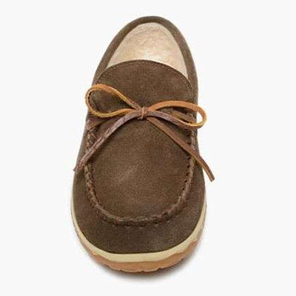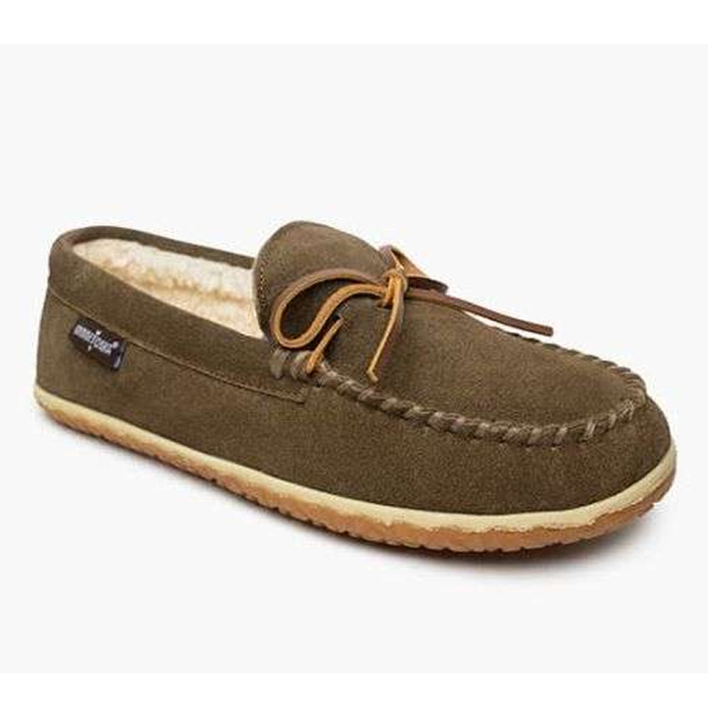Master comfort while on-the-go or lounging the day away at home in soft genuine suede and warm berber lining. Keep comfy both indoors and out with a removable contoured footbed and heavily treaded MinnTREAD sole for traction.