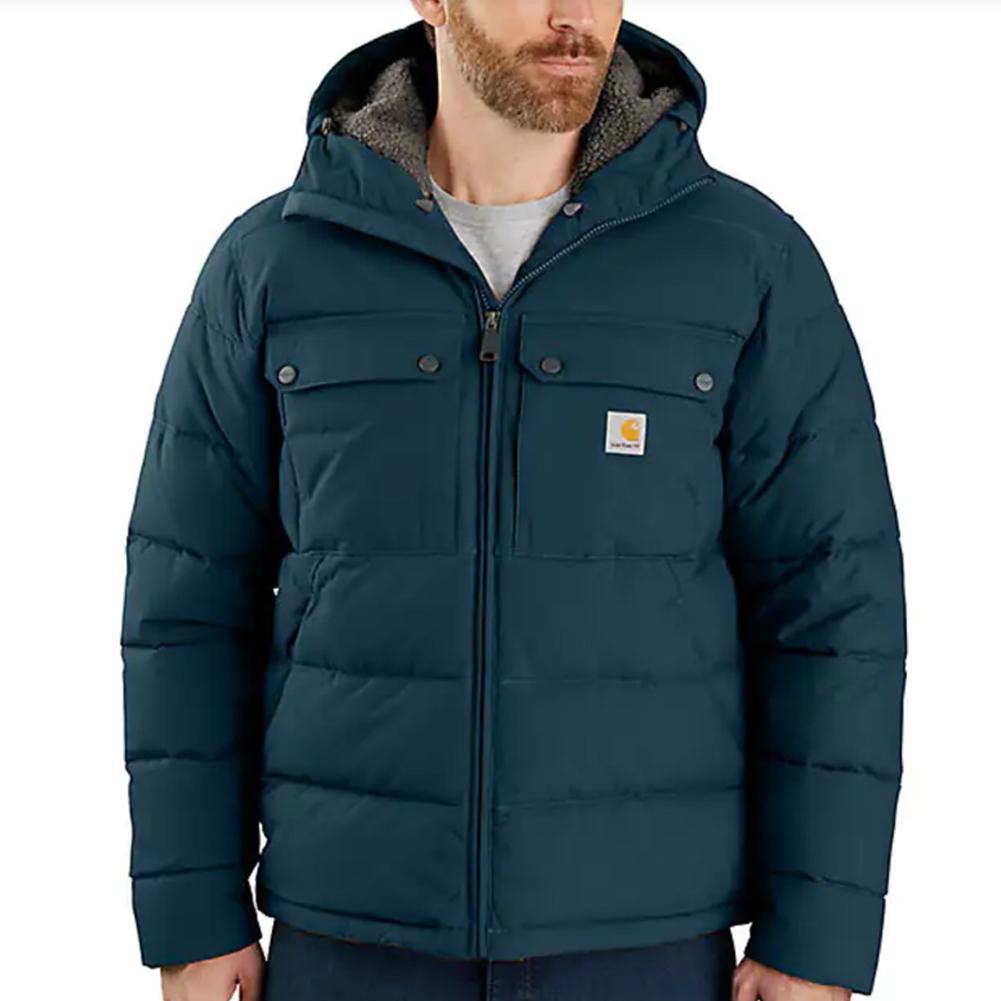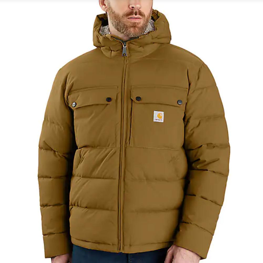 Carhartt Montana Loose Fit Insulated Jacket - Engineered For Extreme Warmth in the Coldest Conditions On Earth. See Technology section below for more details.When it comes to wet weather, it's all about the right gear. This men's jacket offers insulated warmth to keep you working. Wind resistant and water repellent, it comes equipped with synthetic down insulation plus a sherpa fleece lining in the upper body to seal in heat. Pockets inside and out offer plenty of storage.