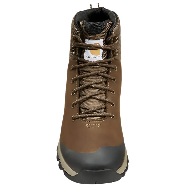 Low-profile trail boot meets reinforced work boot in these men's hiking boots. They combine a durable leather upper with a waterproof, breathable membrane for dry feet in wet, muddy conditions. The alloy toe box maintains a lightweight feel while enhancing impact resistance. An engineered footbed and cushioned midsole reduce fatigue when you're on your feet all day, letting you move and get the job done in comfort.