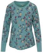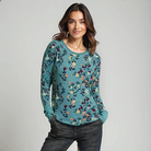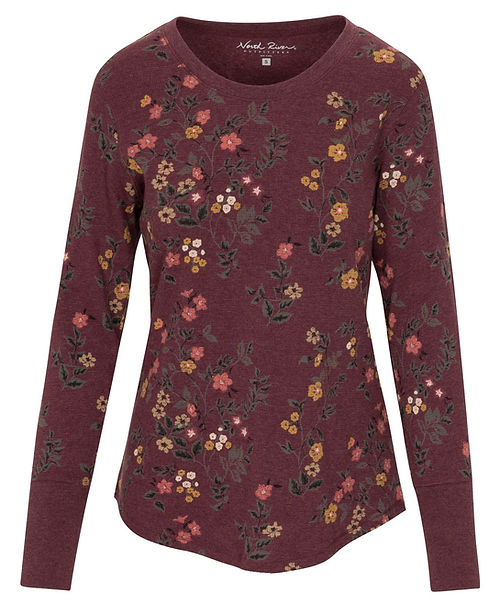 A Women's long-sleeved Wildflower Waffle Crew sweater with a round neckline. The sweater is made of a soft comfortable .The overall look is casual and relaxed.