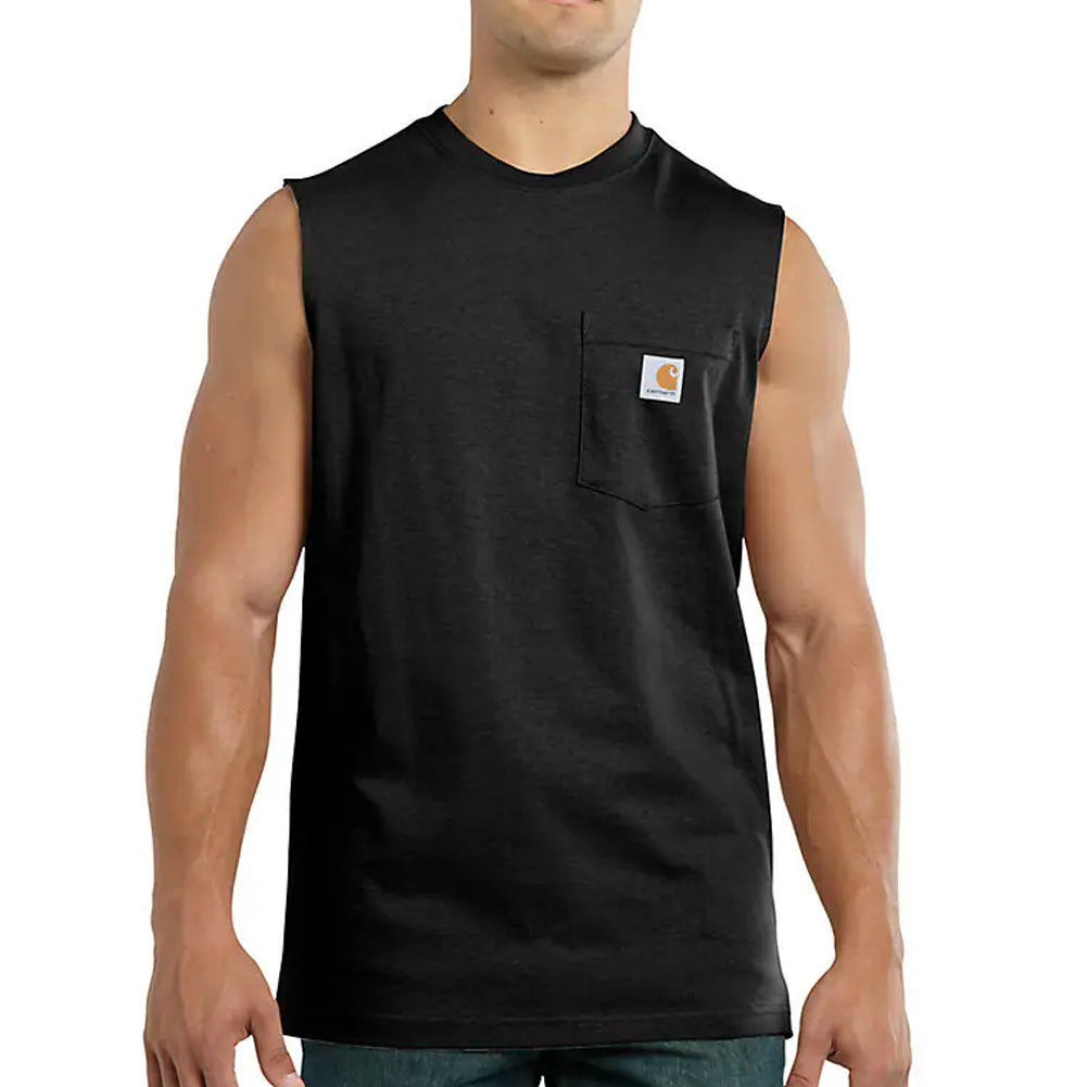 Since 1889, Carhartt has made durable workwear you can count on as you tackle the toughest jobs. This men's sleeveless t-shirt bears our logo proudly on the chest pocket. It's made of heavyweight cotton jersey to wear by itself or as a base layer.