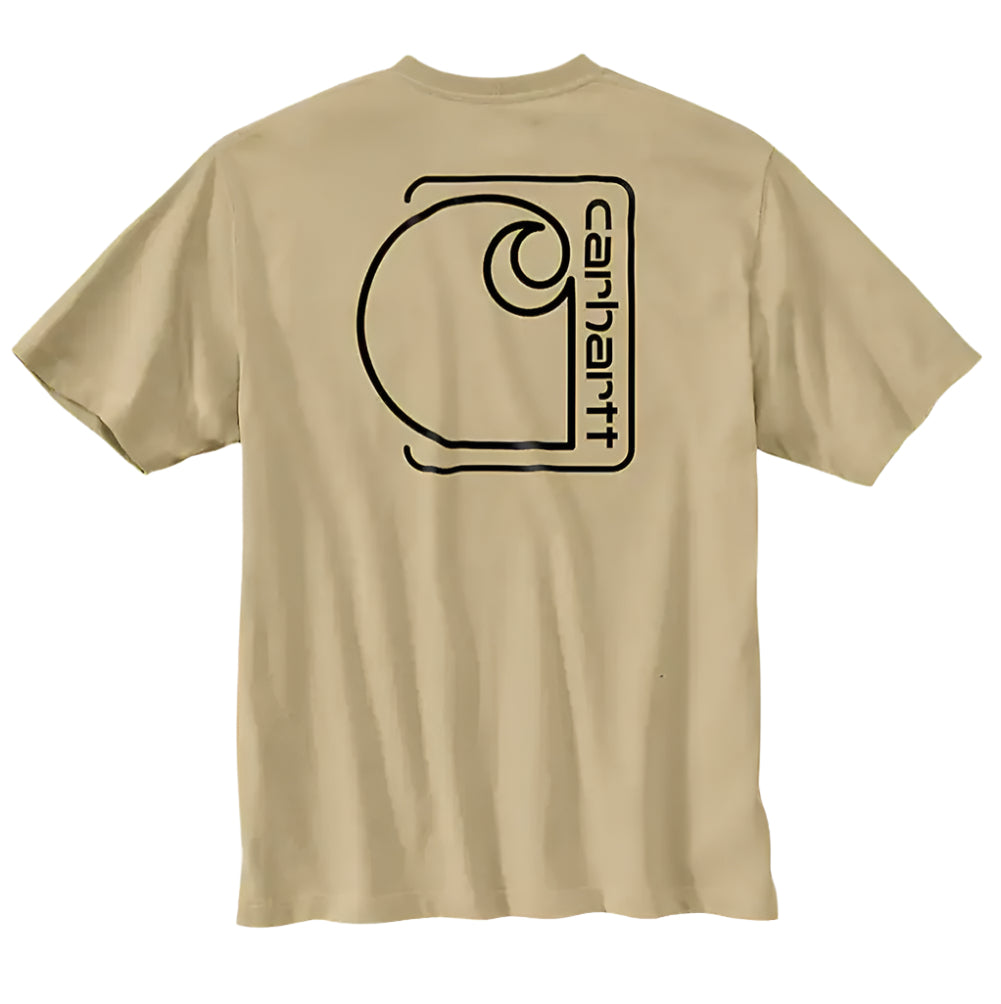 Everyday comfort meets Carhartt toughness with this men's graphic short-sleeve tee featuring a Carhartt "C" on the back. It's made from a lightweight cotton-blend jersey with an easy, relaxed fit and has a chest pocket for added utility. The graphic uses high-density ink to add texture by subtly raising the printed elements.