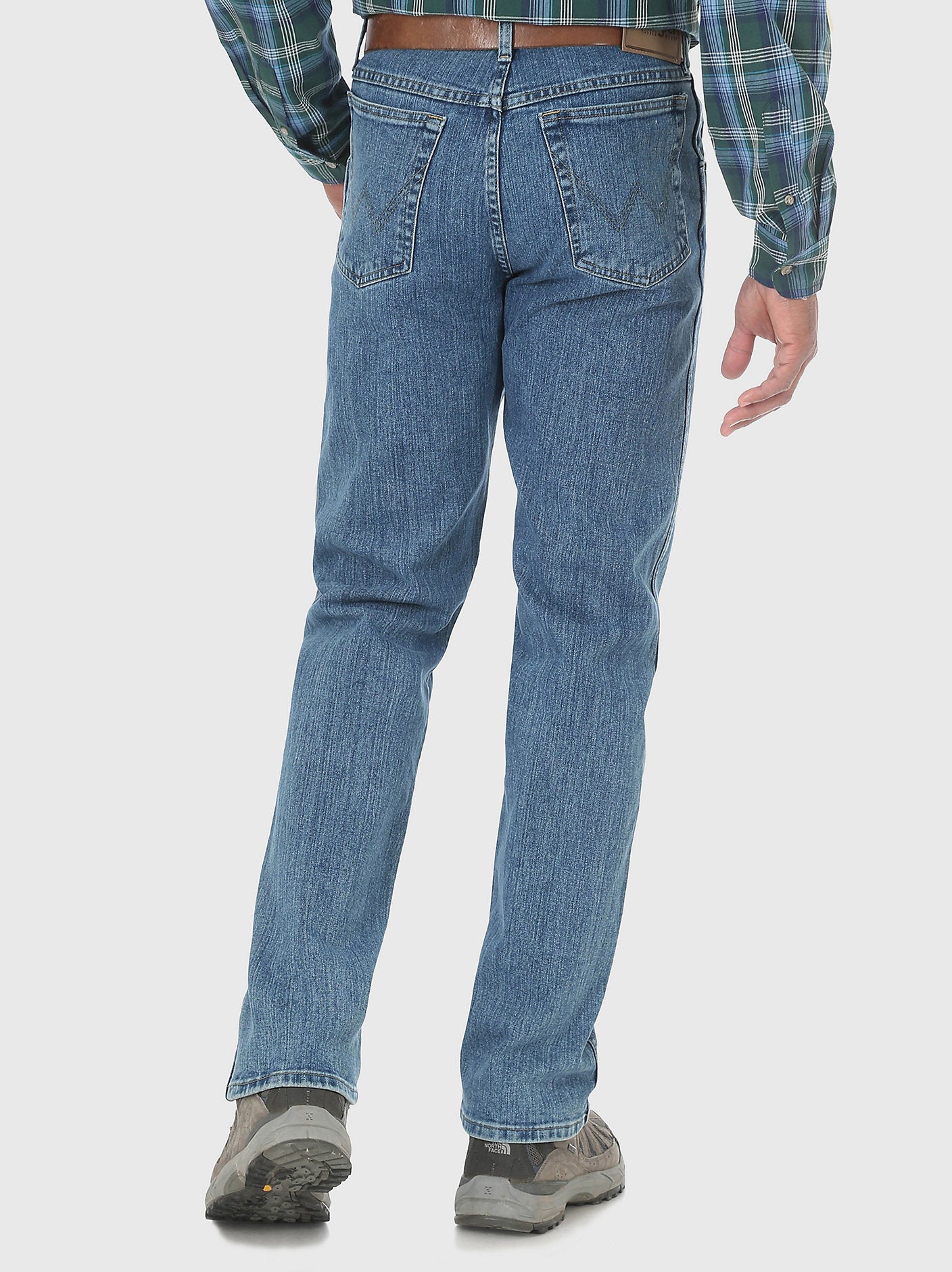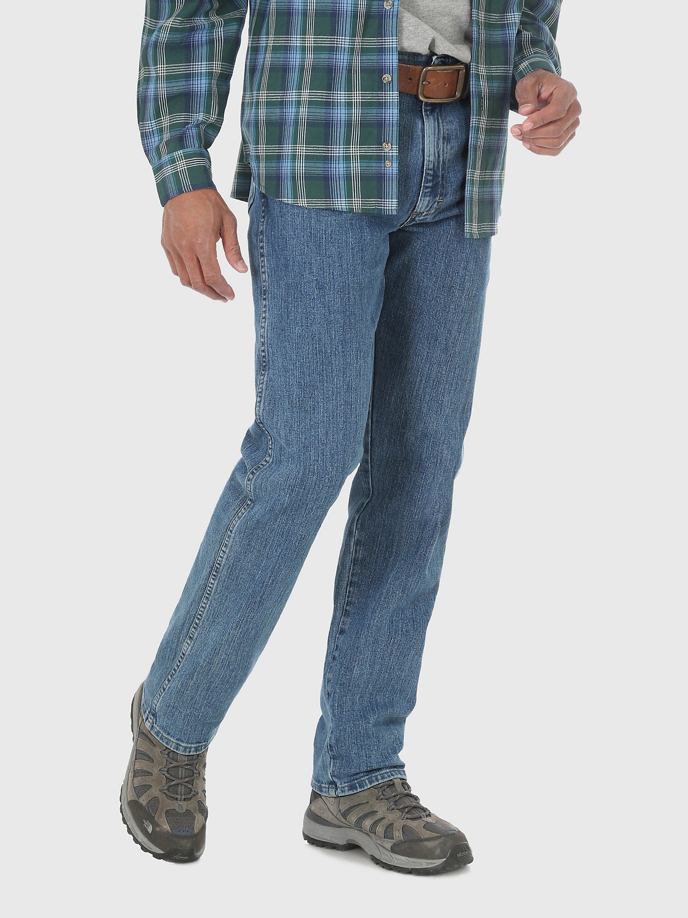 The Wrangler Rugged Wear® collection combines classic denim styles with hardworking features designed to help you get through anything. Made for maximum comfort and durability, the Wrangler Rugged Wear Performance Series Relaxed Fit Jean features a U-shape crotch construction that prevents the denim from digging into the skin. Plus, an elastic waistband offers plenty of comfort where it matters most. These relaxed fit jeans offer just enough room and just enough stretch to keep you moving freely all day long. Plus, the pockets are extra deep and feature easy-entry technology for added convenience you can count on. 'W' stitched back pockets are a reminder that the Wrangler legacy has your back.