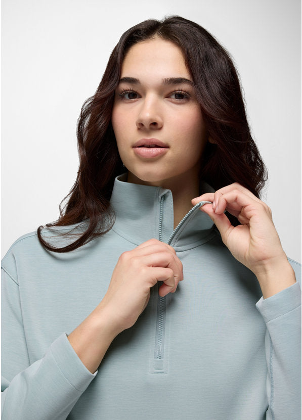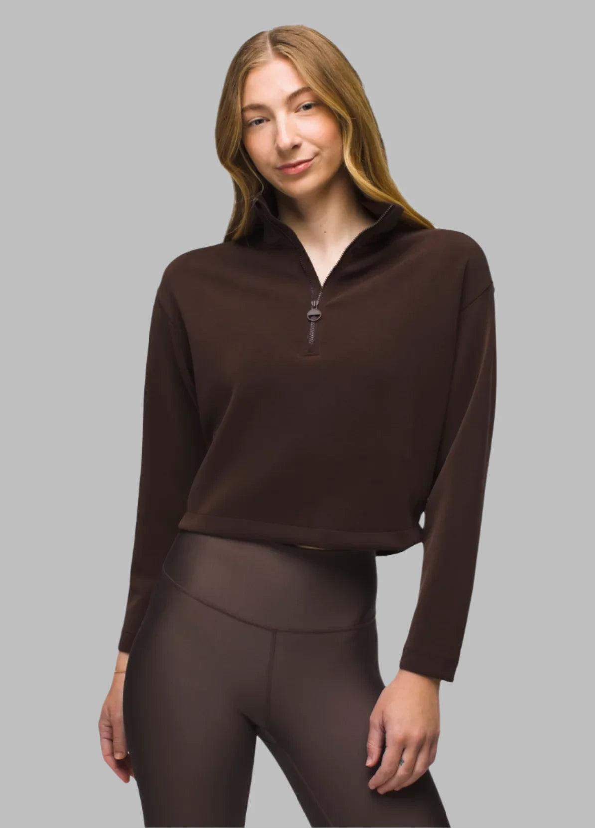 You'll want to wear this half zip made from our signature buttery soft Shea fabric everywhere. It is designed with hidden on-seam pockets to keep the look sleek. Make it a set with the Shea Wide Leg Pant or Shea Jogger.