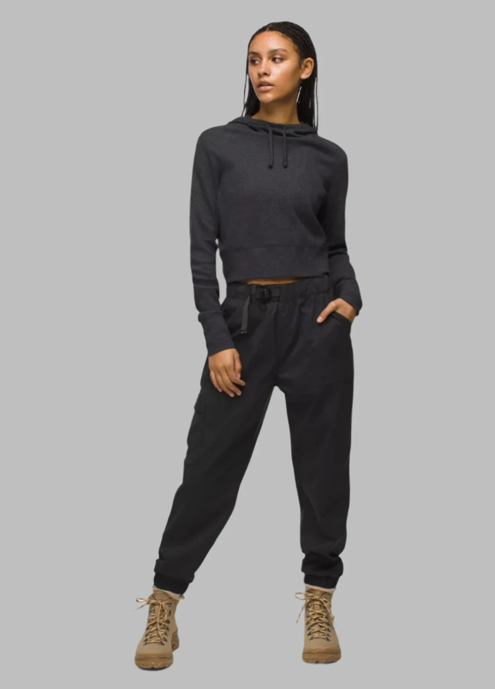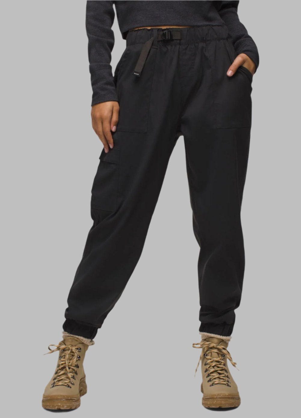 PrAna took everything you love about the bestselling Halle Pant and put it into the Stretch Zion™ E-Waist Jogger. With an oversized fit and high rise, they are designed to slip smoothly over your leggings or shorts. The innovative Stretch Zion™ fabric wicks away moisture while you move and provides 50 UPF to help guard against the sun’s harmful rays. Complete with an adjustable elastic waistband and multiple pockets to keep your accessories within arm’s reach.