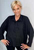 A relaxed fit pullover style blouse with a soft drape and full length sleeves. The open neckline gives and easy and effortless feel while the hip length cut makes it versatile to wear with your favorite slacks.