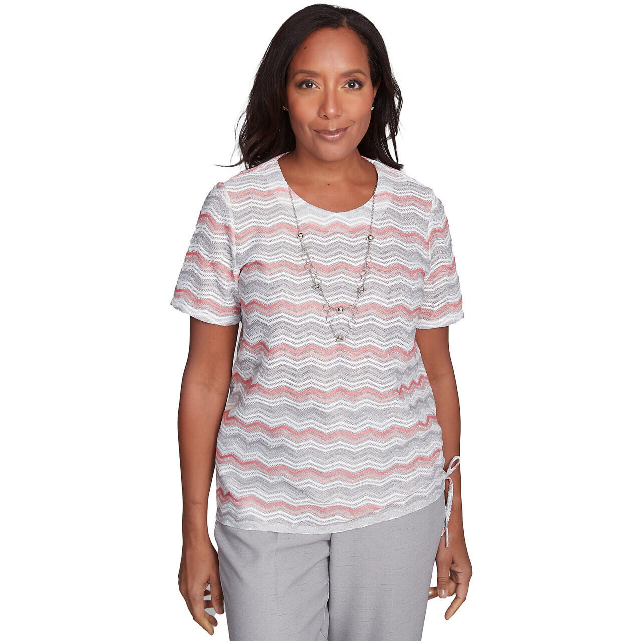 Women's Chevron Shimmer Tee With Necklace - 90458