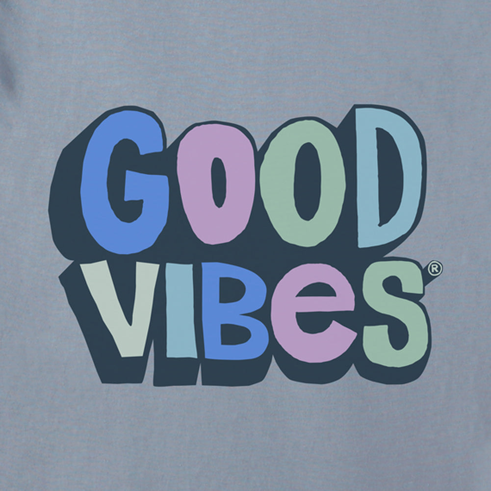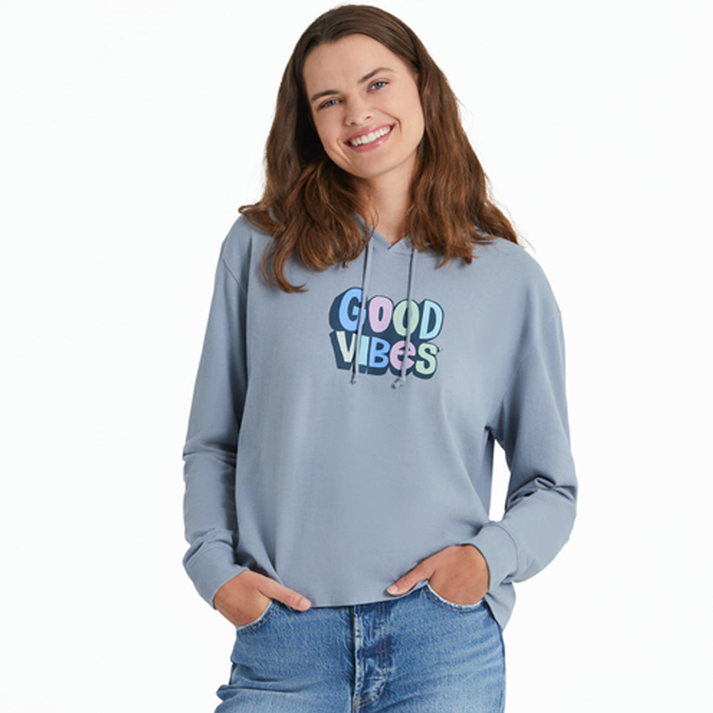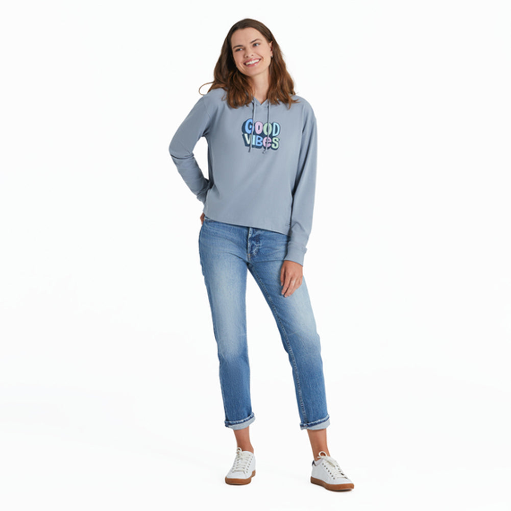 Women's Good Vibes Hand Drawn Crusher Boxy Hoodie - Stone Blue - 115197