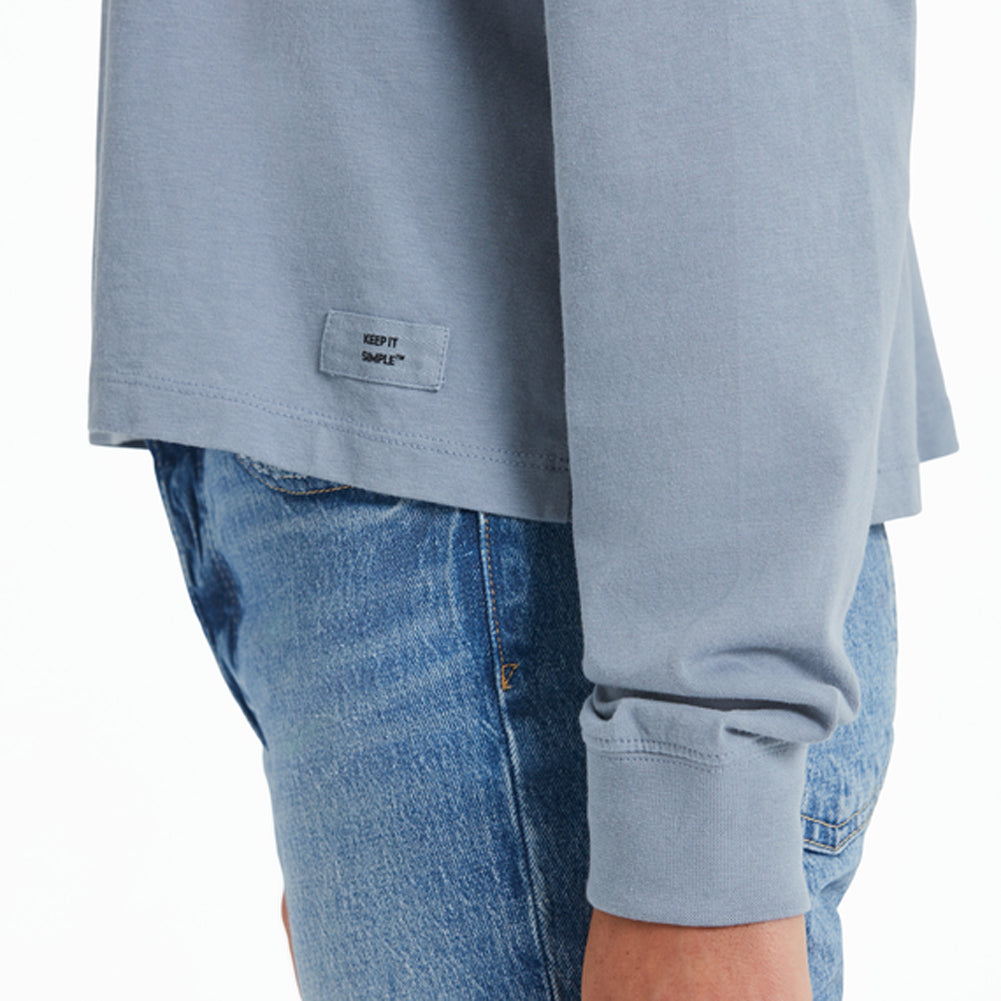 - Self-fabric taping inside back neck. Ribbed cuff with Spandex.