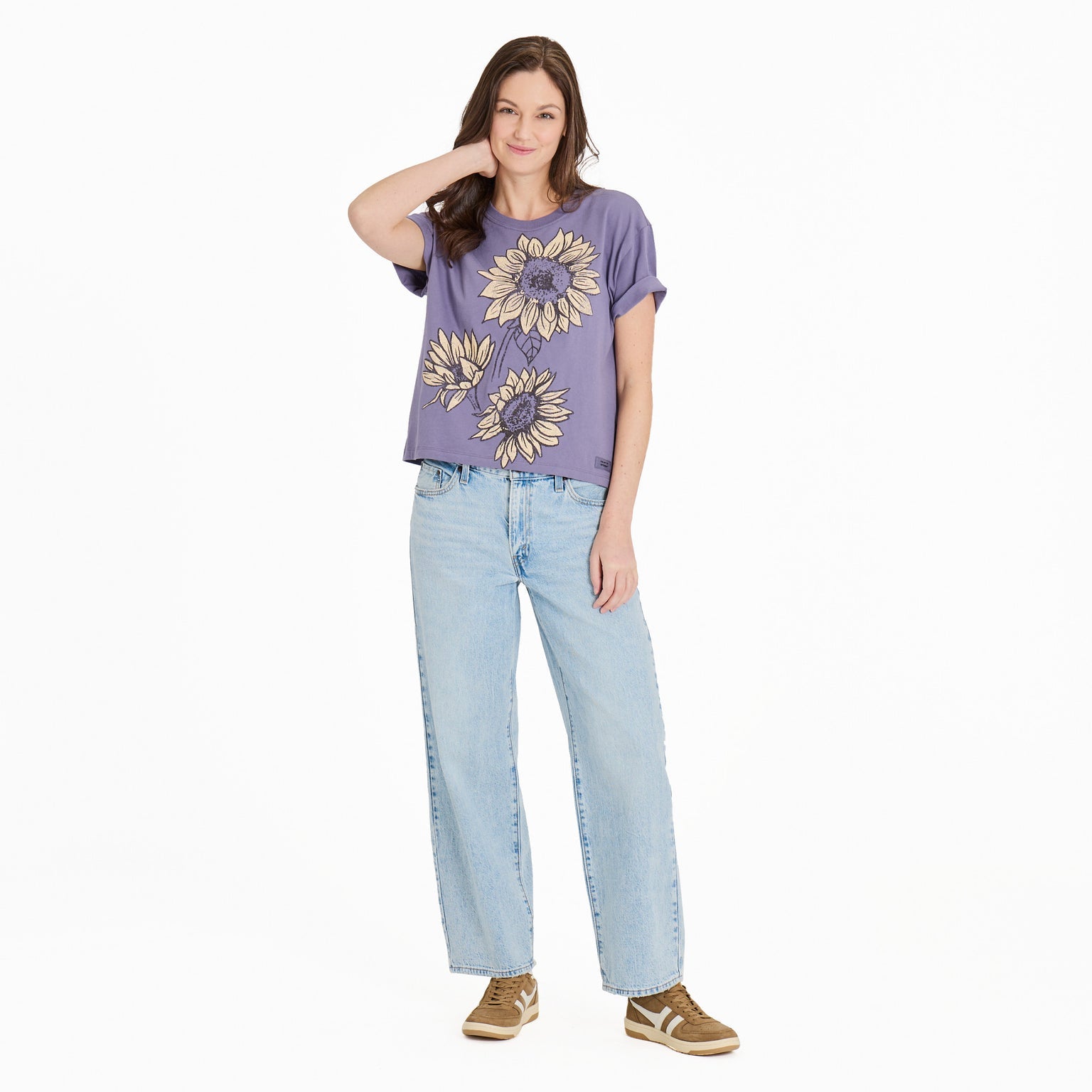 Women's Linear Sunflower Trio Short Sleeve Crusher Boxy Tee - Dusk Purple - 139717